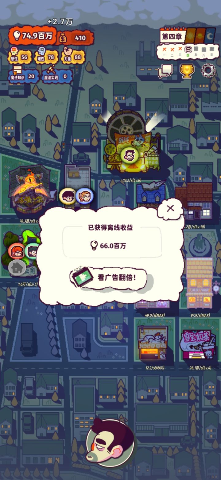 这个离线收益是怎么算的?为什么我离开的时候是44百万,获得66百万之后是74百万?我发完贴之后看了一眼,又变成19百万了!这关要80百万才能睡觉……而且我记得我昨天睡觉之前就是74百万了,醒了之后拿来离线收益,发现还是70百万左右。我没管他,过了几个小时再打开,70多百万加了离线收益之后变成40百万。越加越少是什么意思?这就是满减吗?