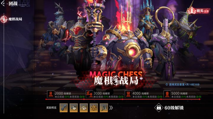 团本要求明天(周四)或后天(周五)大多数玩家可以达到60级60级可以开始攻略棋盘团本棋盘团本分为故事与精英模式故事抗魔要求较比精英少了500点团本奖励包含团本套装的图纸、本命套、徽记等团本奖励获取机制:每周刷新并且每天只能获取一次奖励也就是说每周7天中必须有3天打团以当前服务器进度,周五必须拉高抗魔不然本周团本奖励就会缺失故事与精英奖励区别:注:故事与精英共享奖励次数!