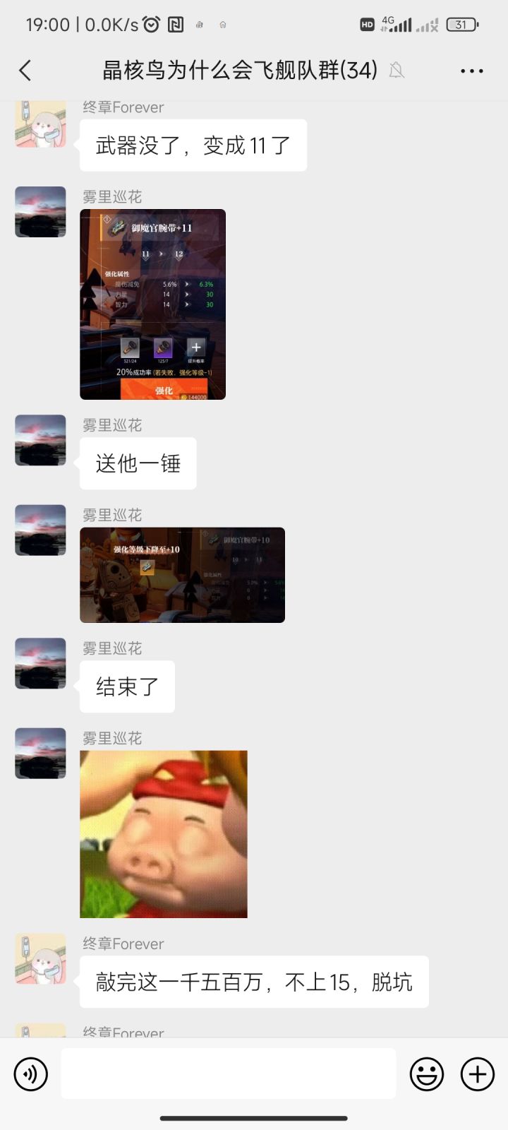 策划你出来吧!我就想问问你,还想要多少人退游?我这朋友四千多万金币敲完武器15上不去你要是实在不行就去隔壁游戏(DNF韩服手游)看看被人的强化机制吧!多的不说,再这样下去你迟早把这游戏弄垮见过贪钱的没见过你们这么贪钱的就算DNFPC端现在没落了,但是它一样有不低的收益,