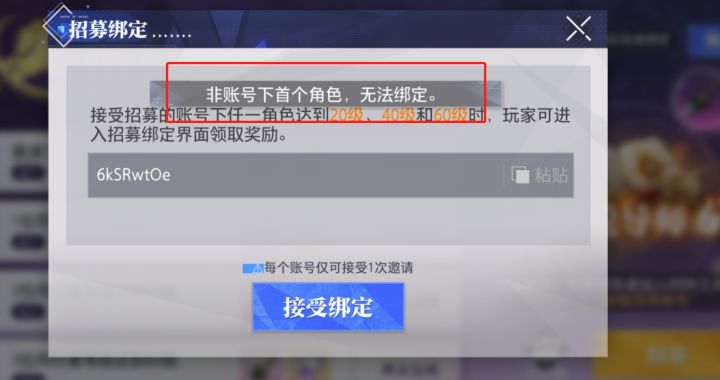 开局就故障,不能进行招募绑定,我的账号明明没绑定,就一直提示我不是首个角色不能绑定,我一个角色试水了下,不喜欢我还不能玩其他角色了是吧。我就非得玩第一角色了是吧?