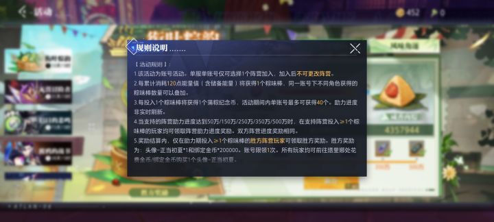 有甜粽子和咸粽子。赢家多个头像。不管输赢能去塔里娜花1金币换一个挺好。差点以为输的拿不到了,怕后面被反超了。大号有个就行。估计有些人要问塔里娜那里怎么买?暂时没看到,应该是要等咸甜之争结束吧。出结果了能买。或者就是没实装。#游戏日常碎片#我在游戏过端午
