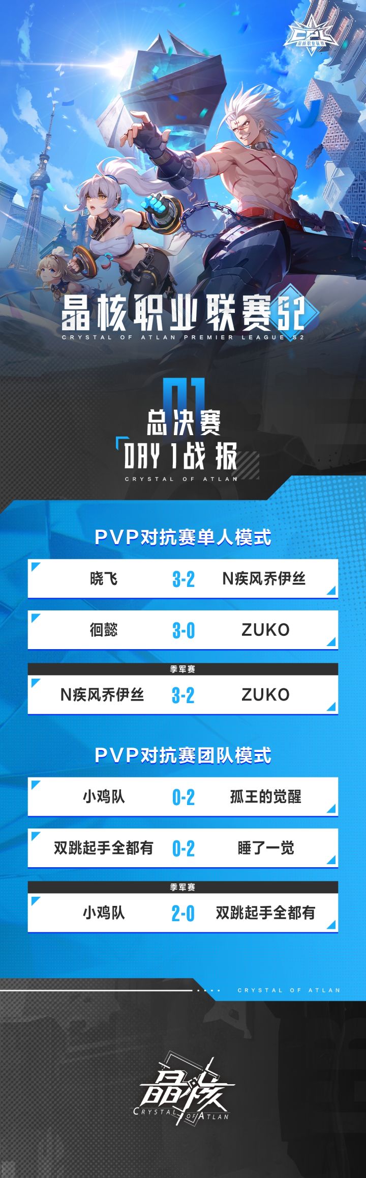 晶核职业联赛S2丨PVP总冠军诞生,恭喜晓飞、“孤王的觉醒”战队