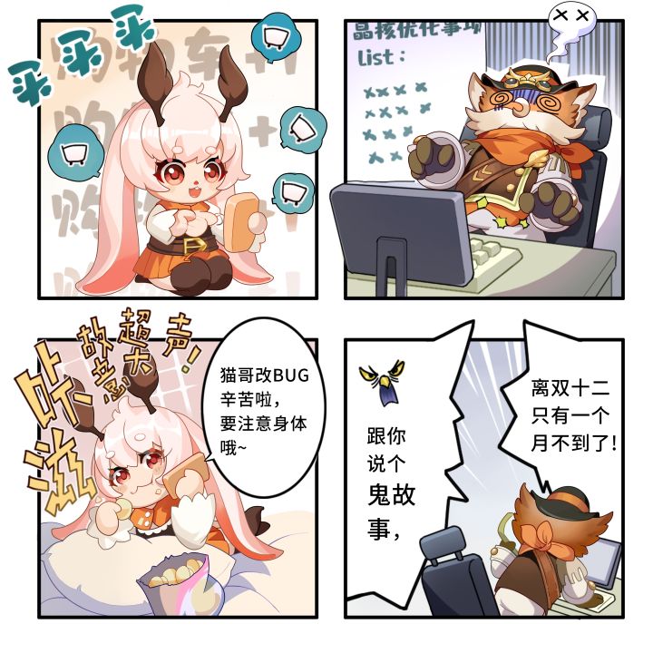 >>运营VS策划>>小兔商店福利活动小兔商店开业啦!在双十一这个日子里,小兔将随机为大家送出周边、京东卡等奖励!【活动时间】2022年11月11日至2022年11月20日【活动规则】大家希望在未来收到什么样的周边呢?留言你最想拥有的周边样式,即有机会获得奖励哦!【活动奖励】随机抽取17名冒险家,分别送出以下奖励~100元京东卡*1随机职业贴纸*4随机职业立牌*4随机磁吸徽
