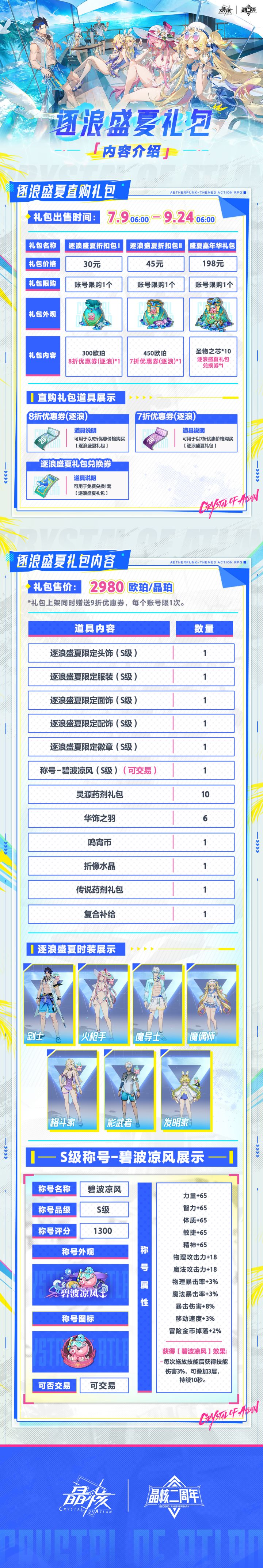 热浪翻涌的盛夏,阿特兰的海风已携清凉而至!7月9日晶核二周年庆,全新代言人联动夏日时装「逐浪盛夏」正式登场,周年庆活动期间将给每一位冒险者免费送出一套!在这难忘的盛夏,与浪花一同追逐起舞吧!清凉海风与谁同至?晶核二周年品牌代言人明日揭晓!晶核二周年庆即将启幕,更多惊喜待你解锁~即刻前往《晶核》官网查看二周年庆典更多内容>>>https://coa.nvsgames.cn/