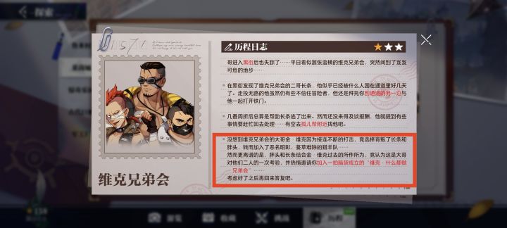 今天群演在莱茵城旁边的孤儿帮。历程没做一点维克兄弟会的,没办法触发嬉笑群演胖头,拿到奖励。维克兄弟会历程最少要做到下图红框这里,才能触发群演胖头,拿到奖励。#游戏讨论#晶核嬉笑群演寻找#晶核鸣夜节#攻略