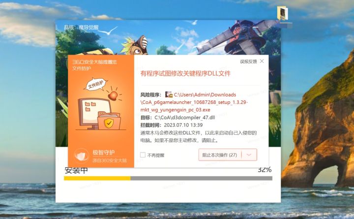 亲爱的冒险者:近期协会收到许多关于PC启动器和客户端下载、更新的反馈,现对大家的提问梳理汇总并一一解答。Q1:使用启动器时遇到杀毒软件拦截,如何处理?A:使用启动器过程中,若出现杀毒软件拦截提示,请点击允许或信任操作,或退出杀毒软件。(若遇到360拦截,请重启电脑后再打开游戏)Q2:重启启动器后,出现下图中报错提示,是什么原因?A:出现图中的报错是由于您当前硬盘储存空间已达到上限导致无法