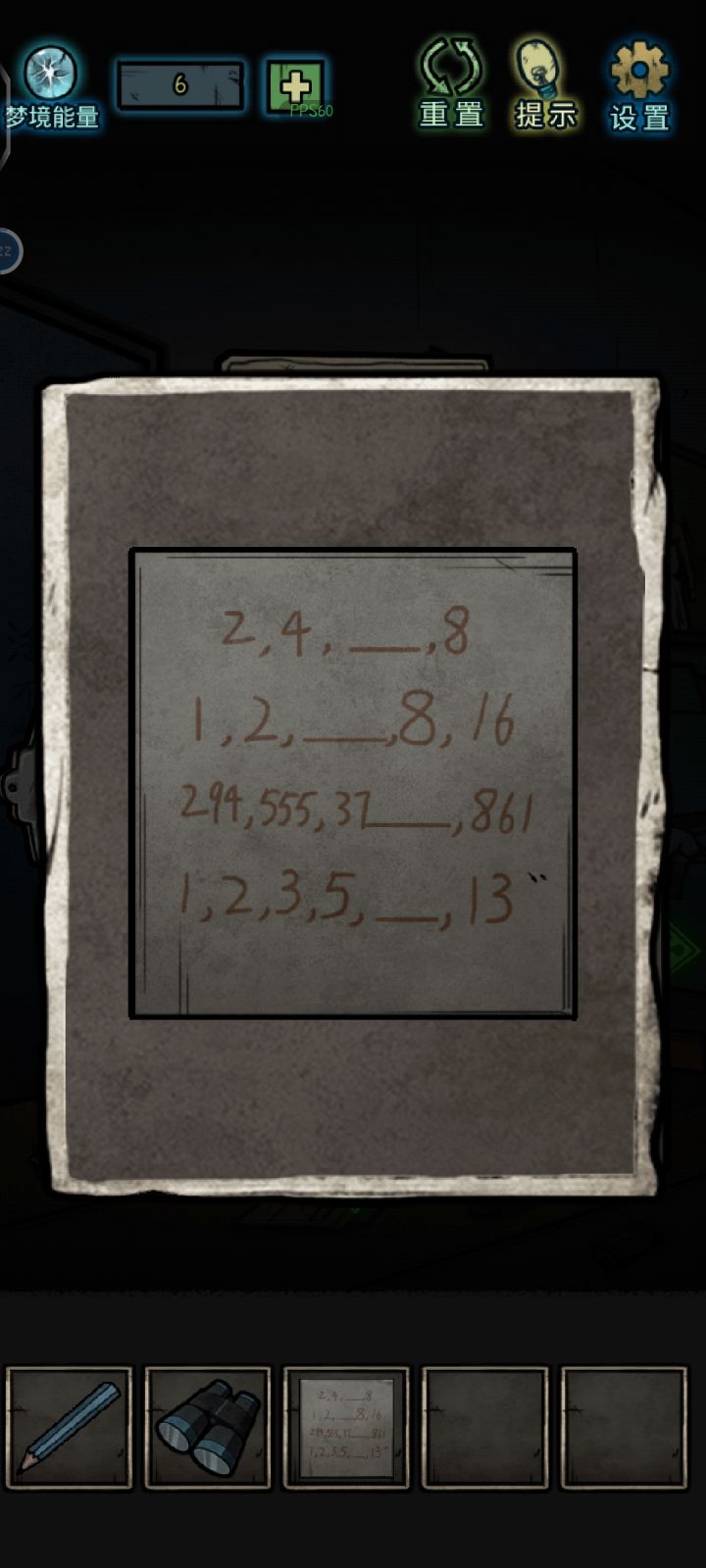 第一案链接:拾取干抹布拾取水和说明书组合水,干抹布,用湿抹布擦黑板关闭灯开关,从刚才擦过的黑板上可以看到9274输入密码获得钥匙和凸透镜用钥匙打开收纳柜取得化学书和园艺铲对照化学书上的化学式,只取字母部分,C.H.CL,对照得6,1,17,把6117输入电闸,使大门通电,用园艺铲挖盆栽得照片,看背面提示把4413输入门锁打开,前往下一场景。镜子上拾取玻璃碎片,洗手台里一个梦境能量