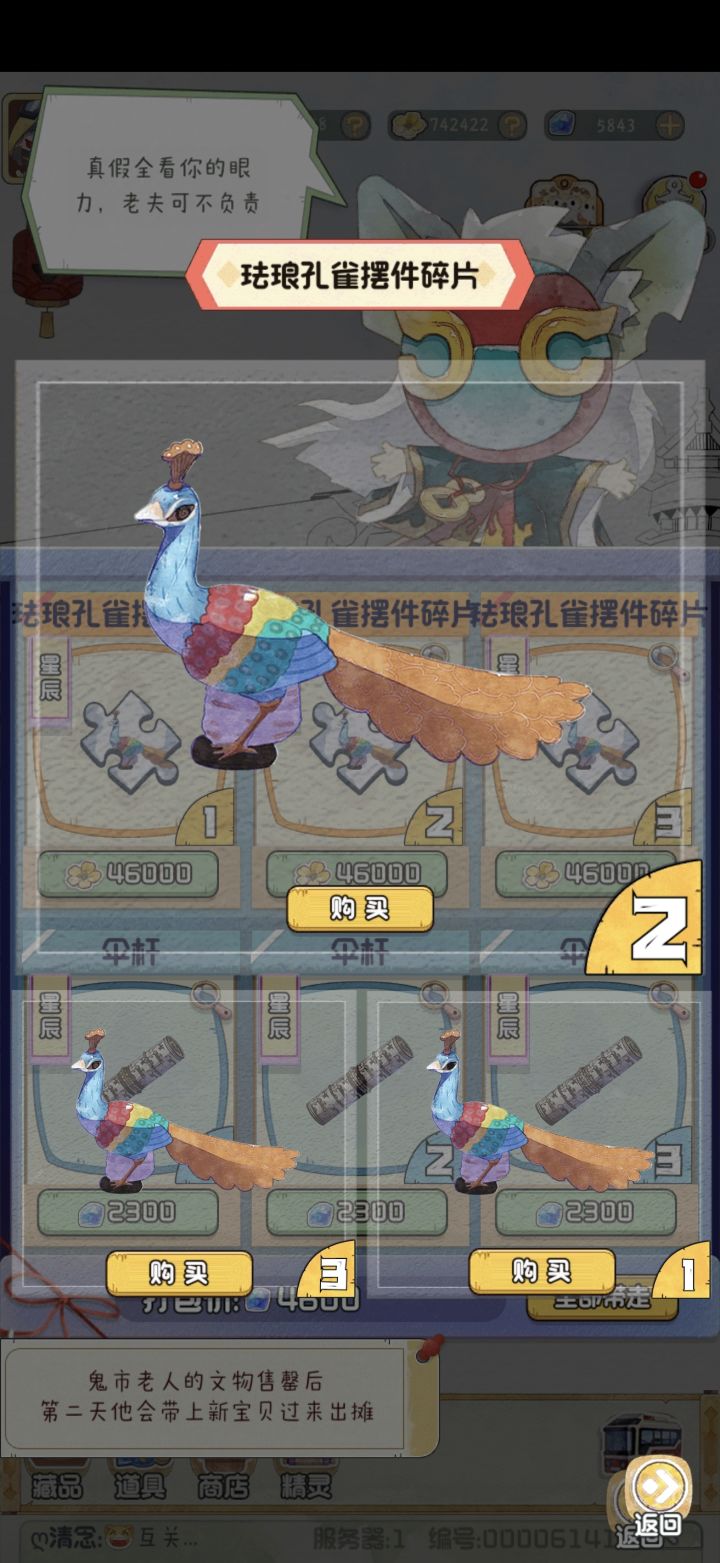 珐琅孔雀:真品眼睛有棕色眼珠,且足部后面的紫色区域有棕色阴影伞杆:真品为最中间环节处有白底图案,且与其相邻的两个环节处是黑底无图案#攻略#游戏攻略#新手攻略