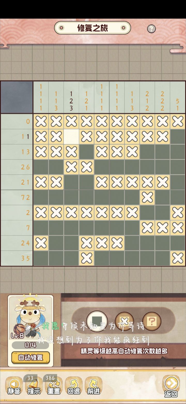 依旧是从左至右,每一列从上至下的顺序填涂完最后一个空白即可完成图中所示可能并非唯一解,仅供参考#攻略#游戏攻略#新手攻略