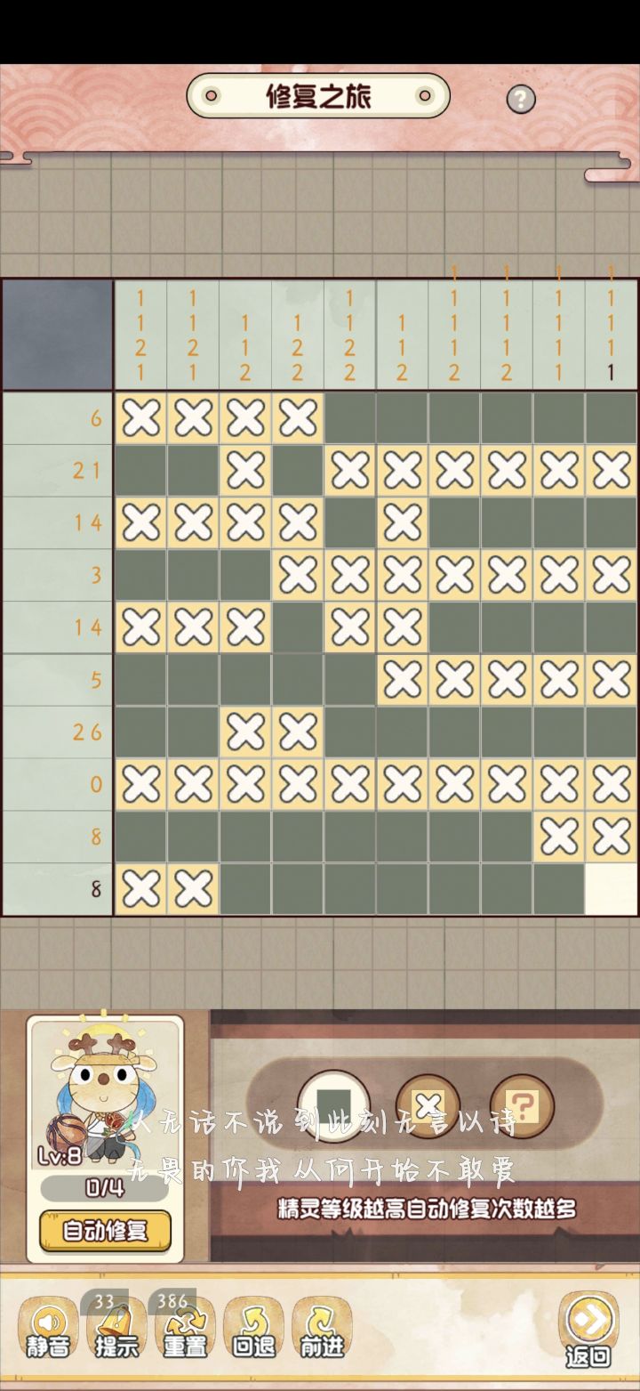 顺序依旧是从左至右,每一列从上至下但是倒数第二个游戏崩坏了没有截到填涂最后一个空白即可完成图中所示并非唯一解,仅供参考#攻略#游戏攻略#新手攻略