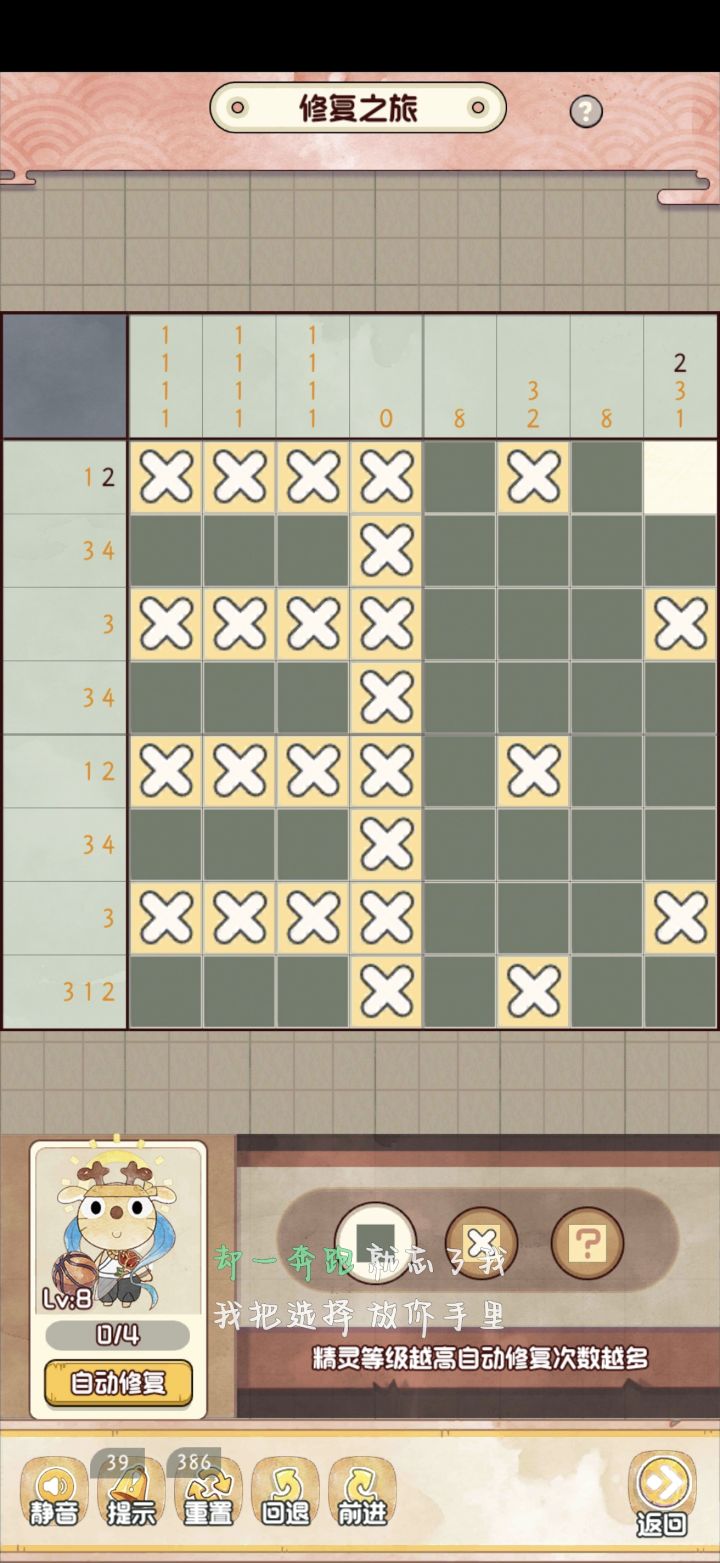 顺序依旧是从左至右,每一列从上至下。填涂完最后一个空白即可完成。图中所示并非唯一解,仅供参考#攻略#新手攻略#游戏攻略
