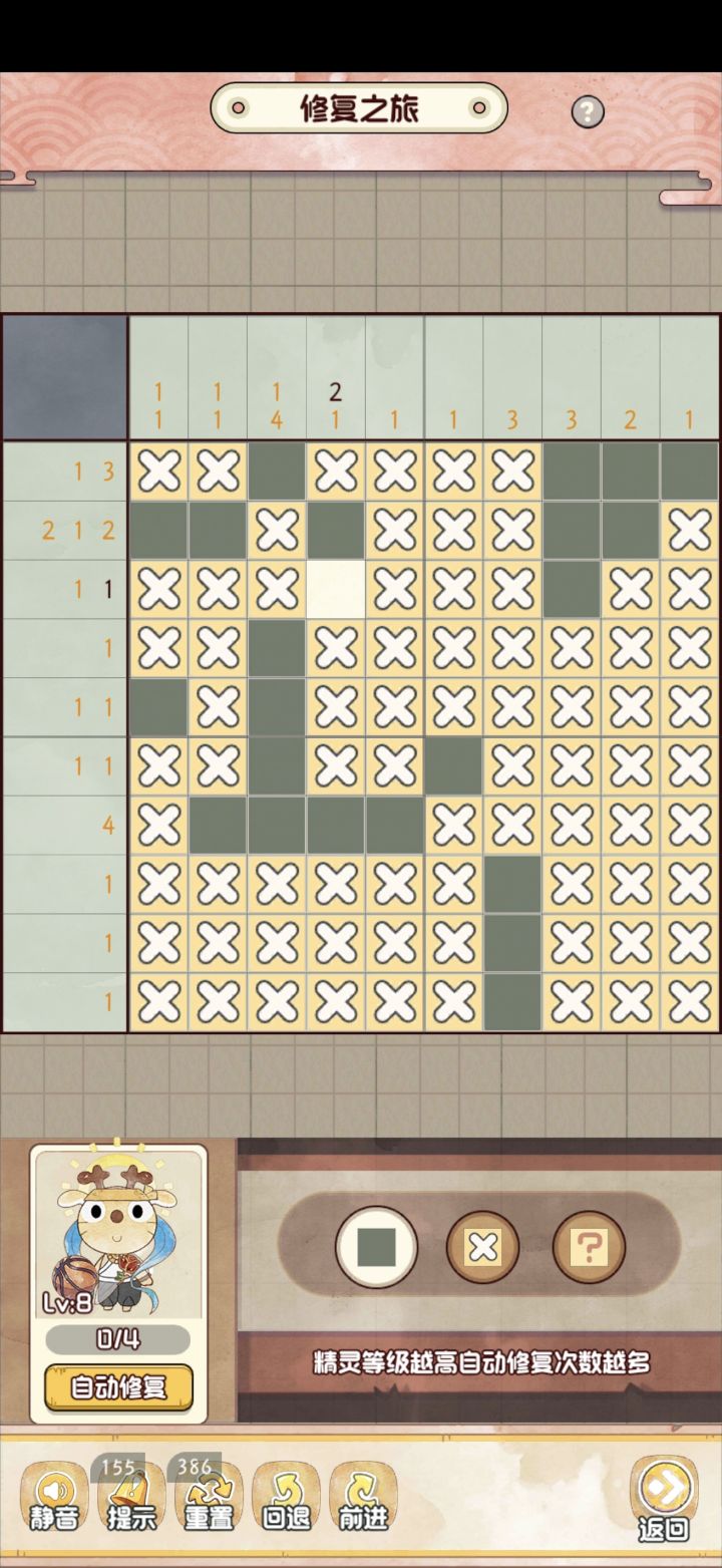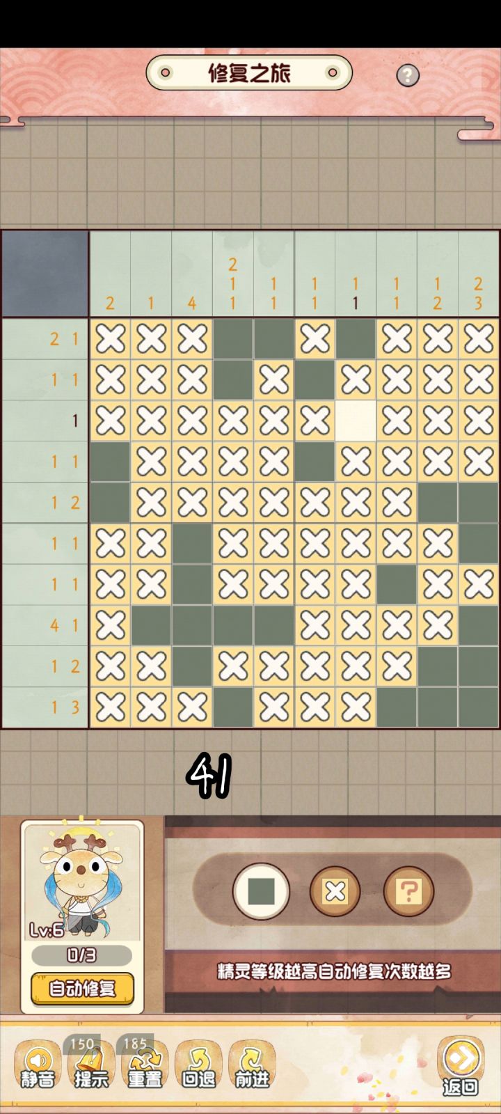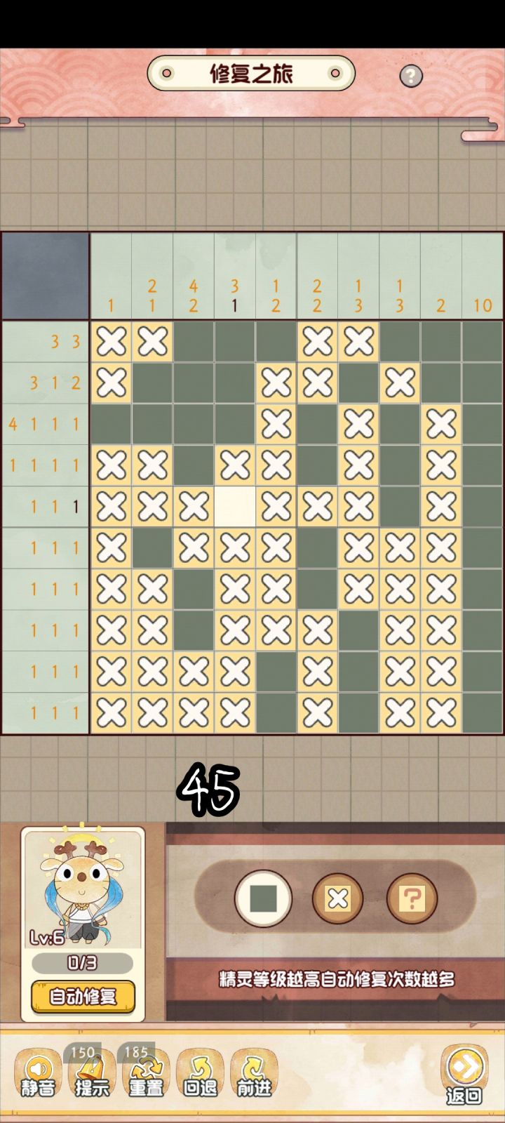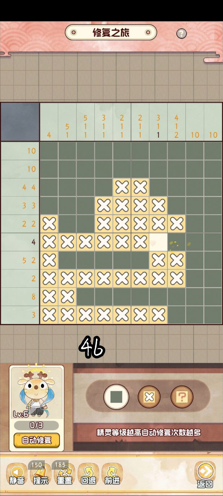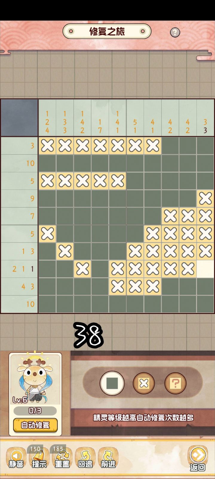 依旧是从左至右,每一列从上至下填涂最后一个空白即可完成图中所示可能并非唯一解,仅供参考。#攻略#游戏攻略#新手攻略