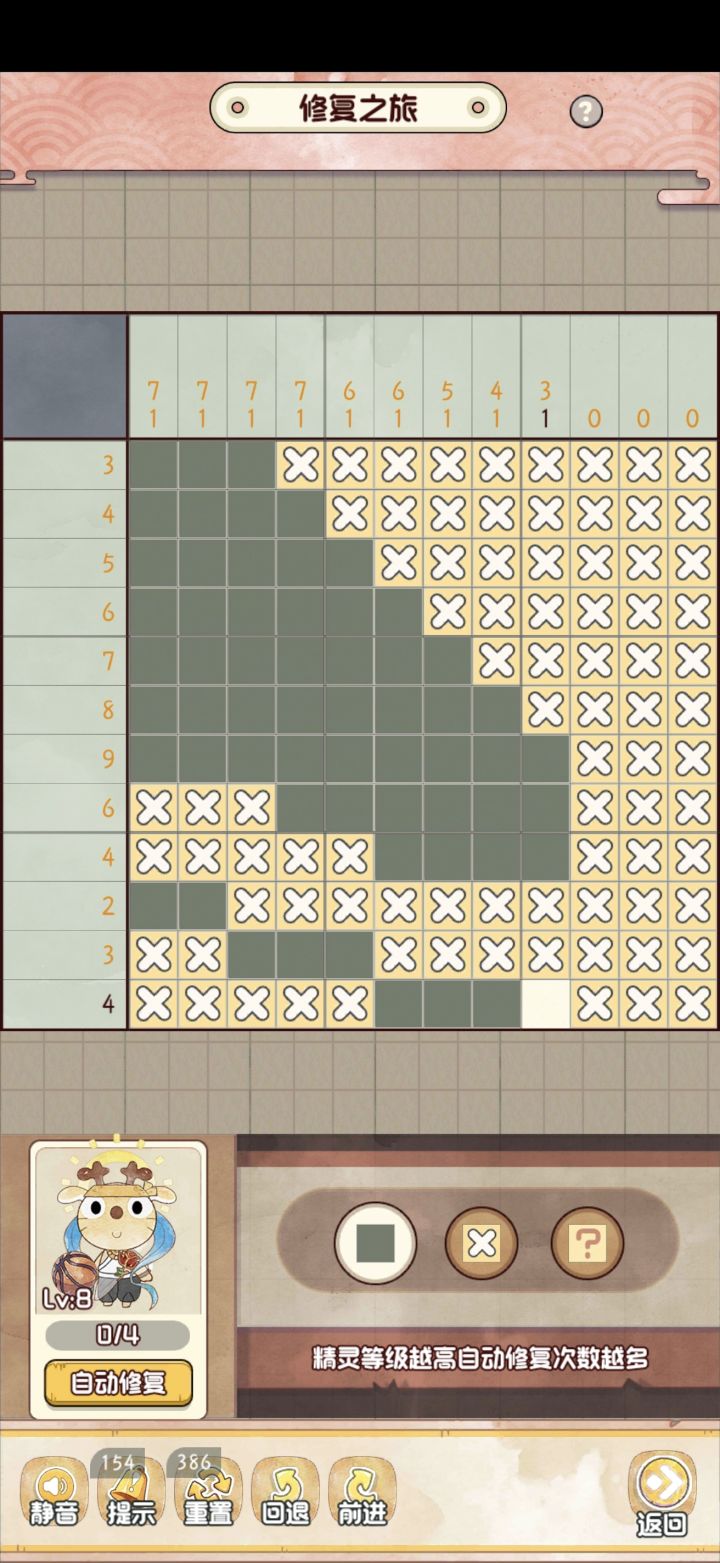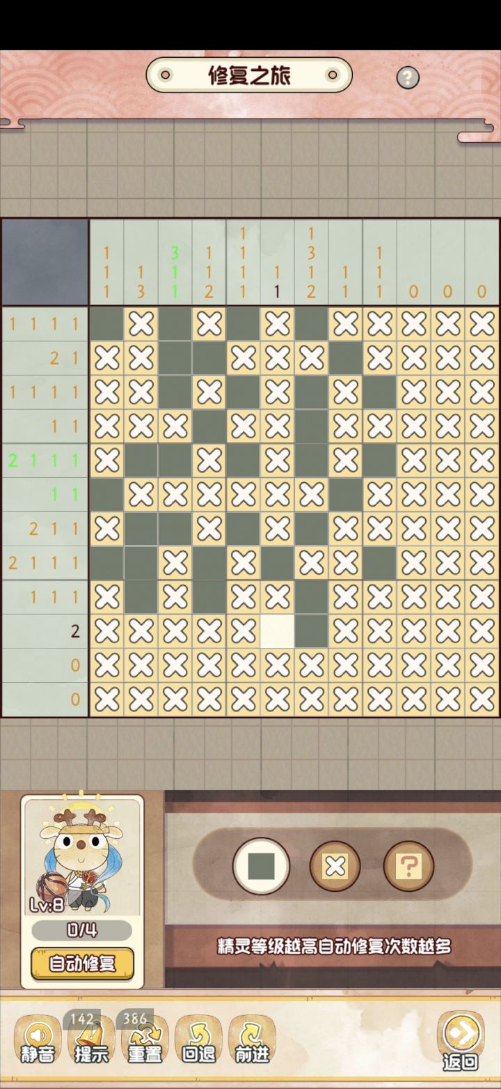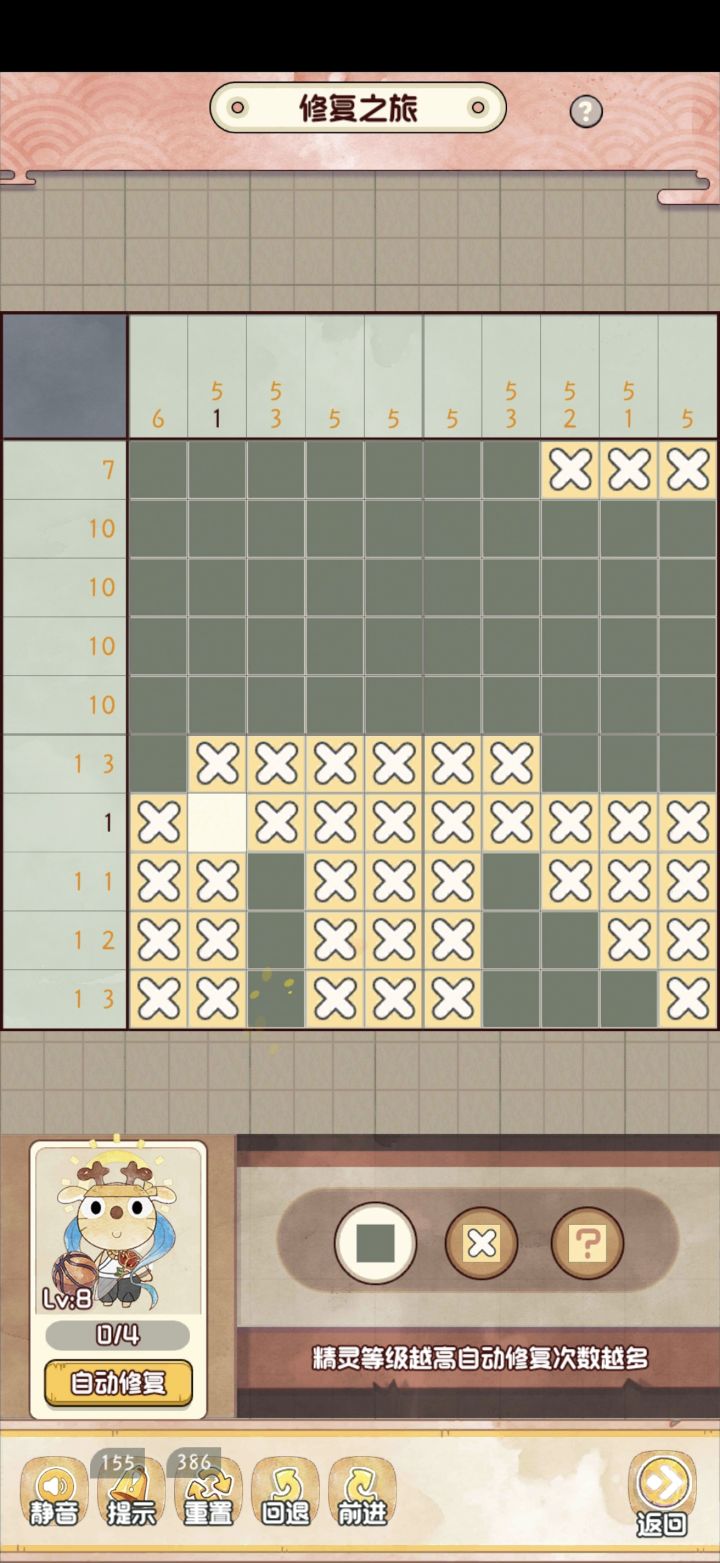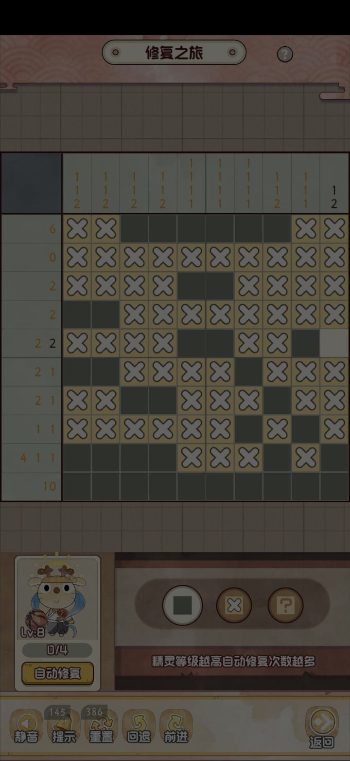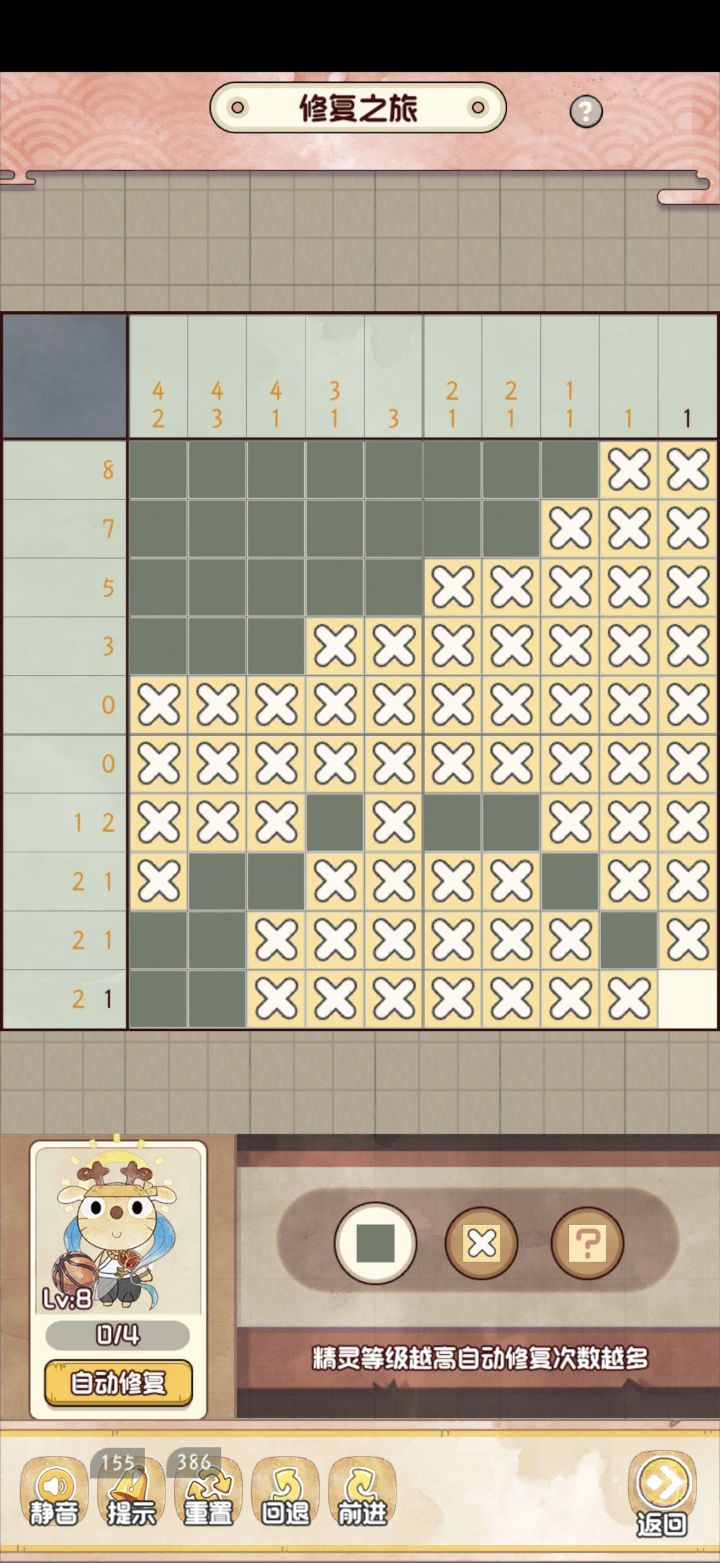 依旧是从左至右,每一列从上至下填涂最后一个空白即可完成图中所示可能并非唯一解,仅供参考。#攻略#游戏攻略#新手攻略