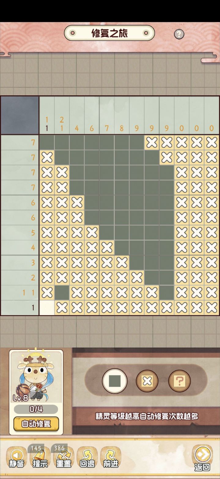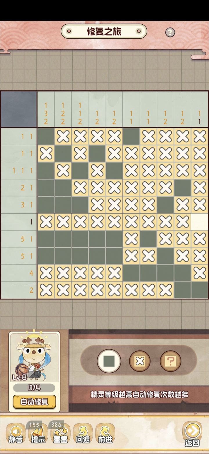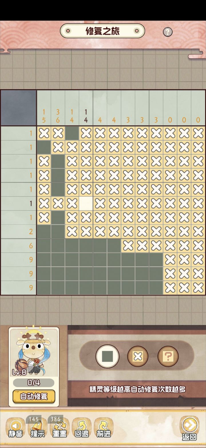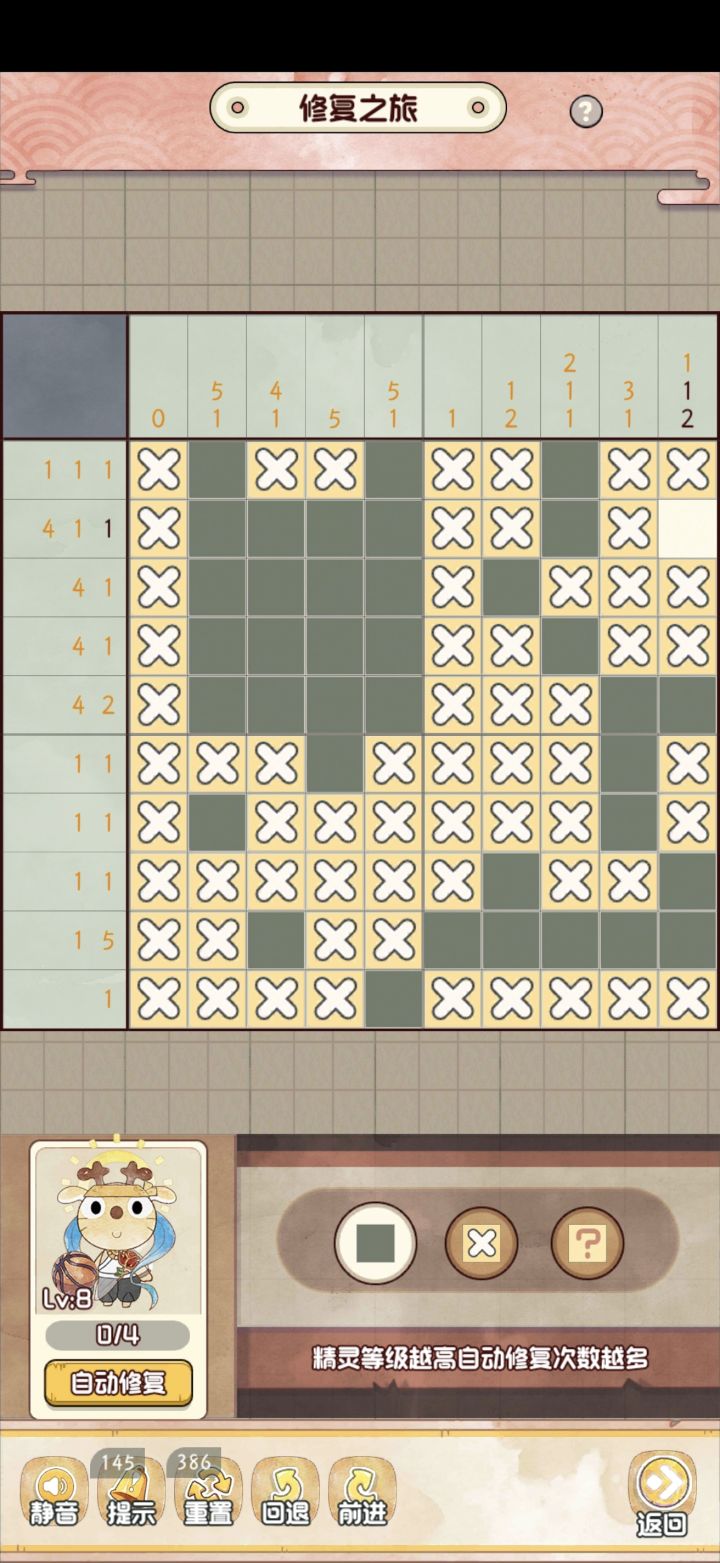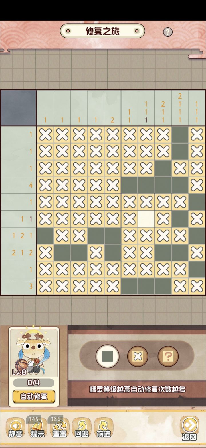 依旧是从左至右,每一列从上至下填涂最后一个空白即可完成图中所示可能并非唯一解,仅供参考。#攻略#游戏攻略#新手攻略