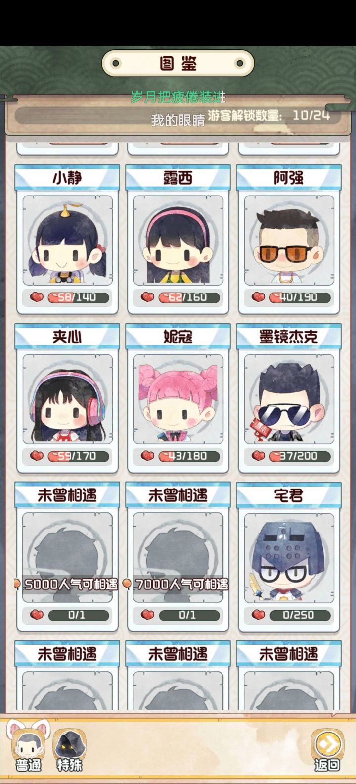 Hello,大家好,我是超梦梦梦,今天的内容相对来说是比较简单的,是我们的游客图鉴~博物馆作为一个传播知识的地方,既然有了引导喵和讲解喵,接下来自然少不了我们的游客大人啦,在博物馆的门前,我们可以看到许多各种颜色的小恐龙,当我们双击或者三级他们就会变成游客的模样走进我们的博物馆,提高我们的收益;当我们的博物馆人气值到达一定的数量就可以解锁不同的游客,游客又分为普通游客和特殊游客,普通游客目前上