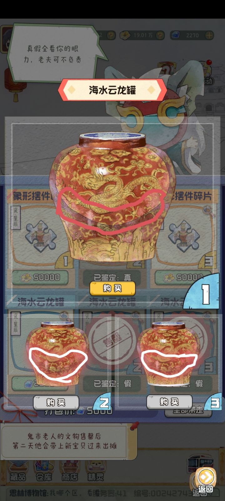 为什么正品这个位置是完整的线?两个赝品都是虚化的?而且这个打眼看上去就是最明显的区别,一下就买两个赝品5000钻进去了,合一天花 7500钻买一个紫。不是说正品和两个赝品各有一处区别,这不显然和两个赝品都有区别吗?这样设计专门用来是套钻的?双月卡攒5000钻很容易吗?还是逼人进论坛查攻略?那鉴宝这环节还有什么存在的意义?