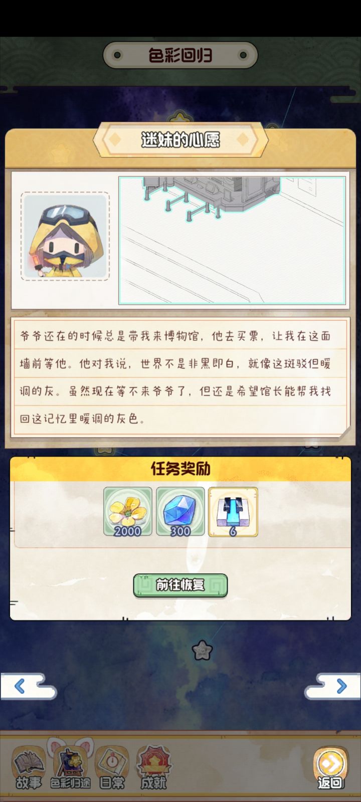 色彩归途《迷妹的心愿》这个关卡过不去,墙面显示不出来,没法涂色,其他的涂再多也没有用。如截图界面中,画圈的部分看不到