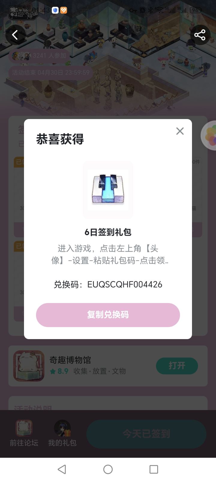 刚刚签到领的验证码,然后手动输入到游戏的设置里面去,就显示过期,还有就是我从论坛里面签到的验证码复制,再到游戏里,就是粘贴进去只能手动输入。