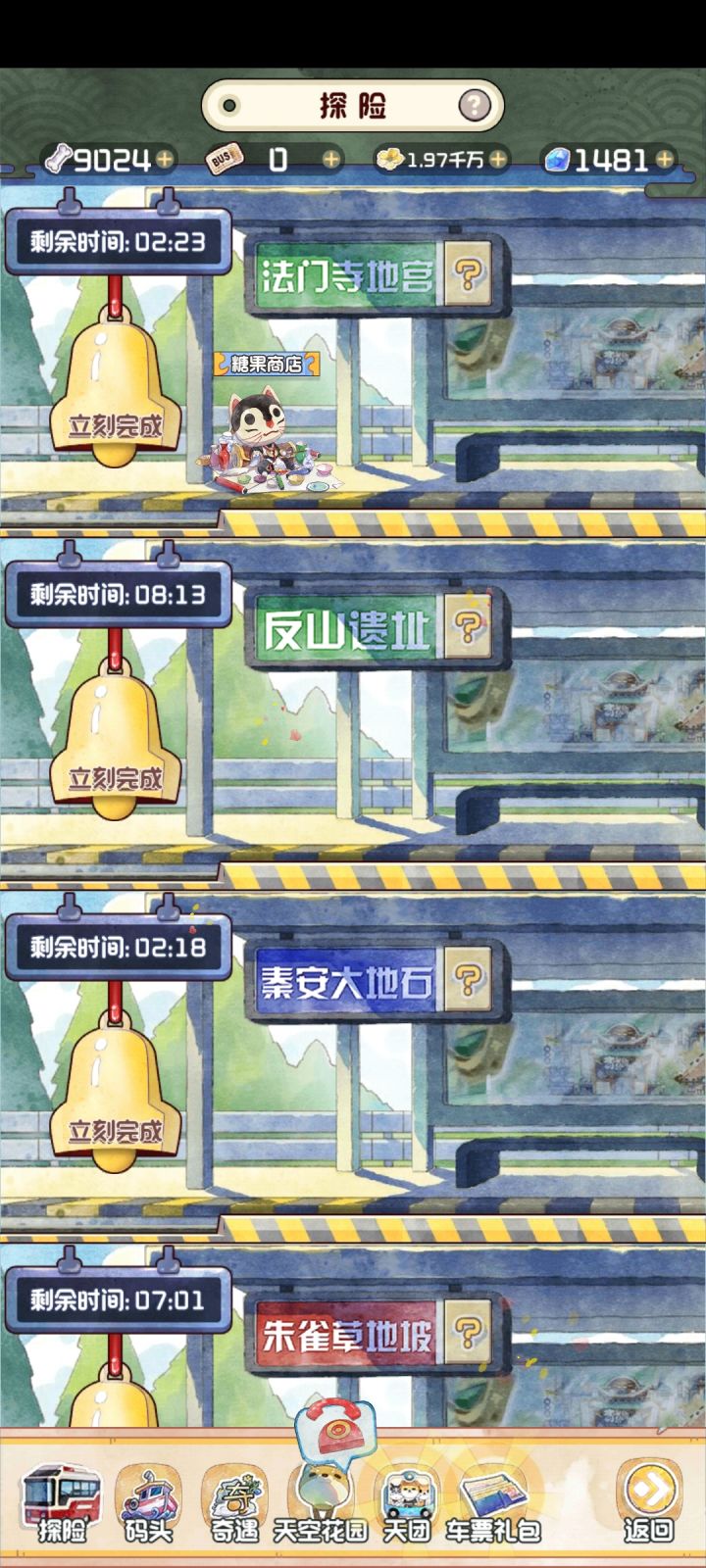 在糖果商店买完一次东西,它就会跑到探险的界面去,只能在探险界面打开了。