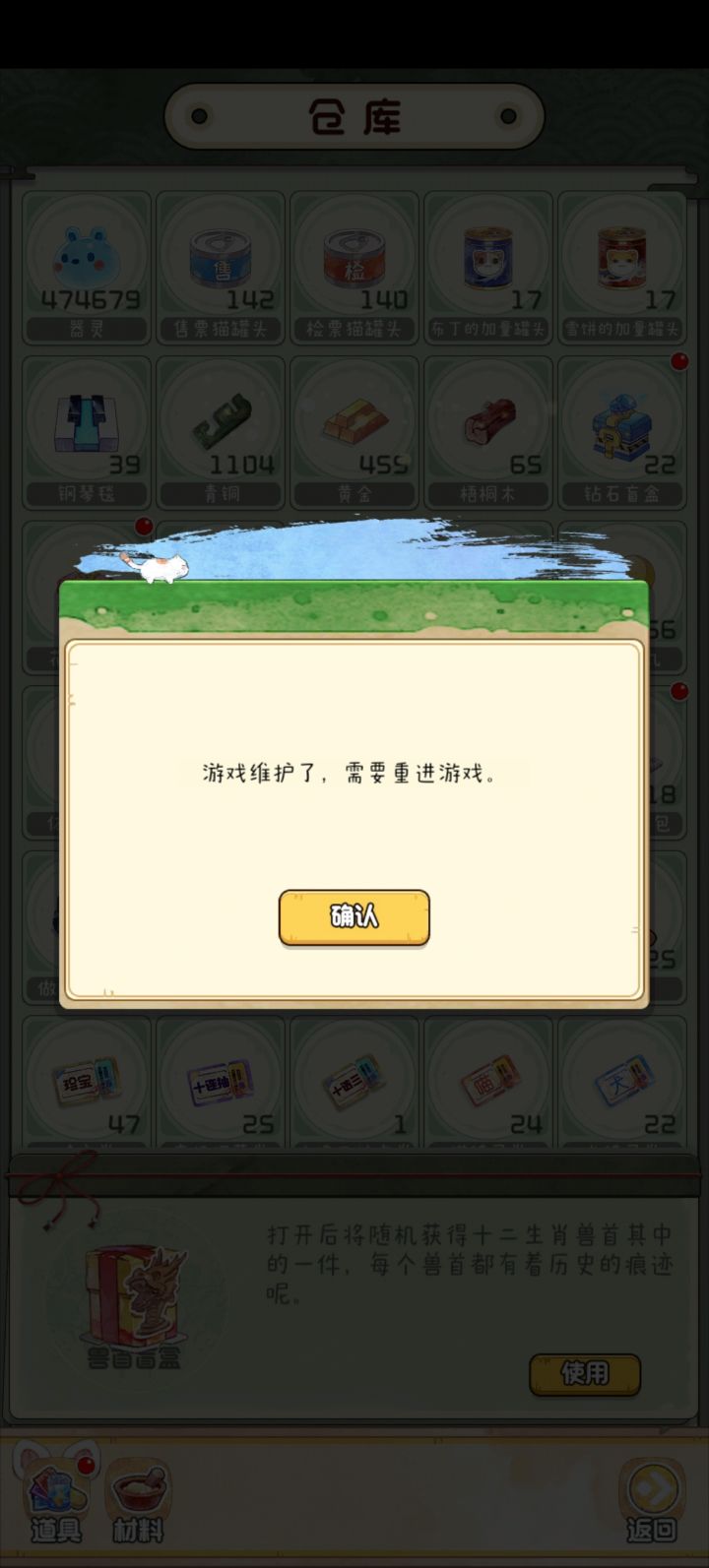 集齐十二兽首后居然领到了第十三个兽首盲盒,点击就会告诉你游戏维护然后弹出游戏。只有后台关闭后才能再次重新进入游戏…这个正常?