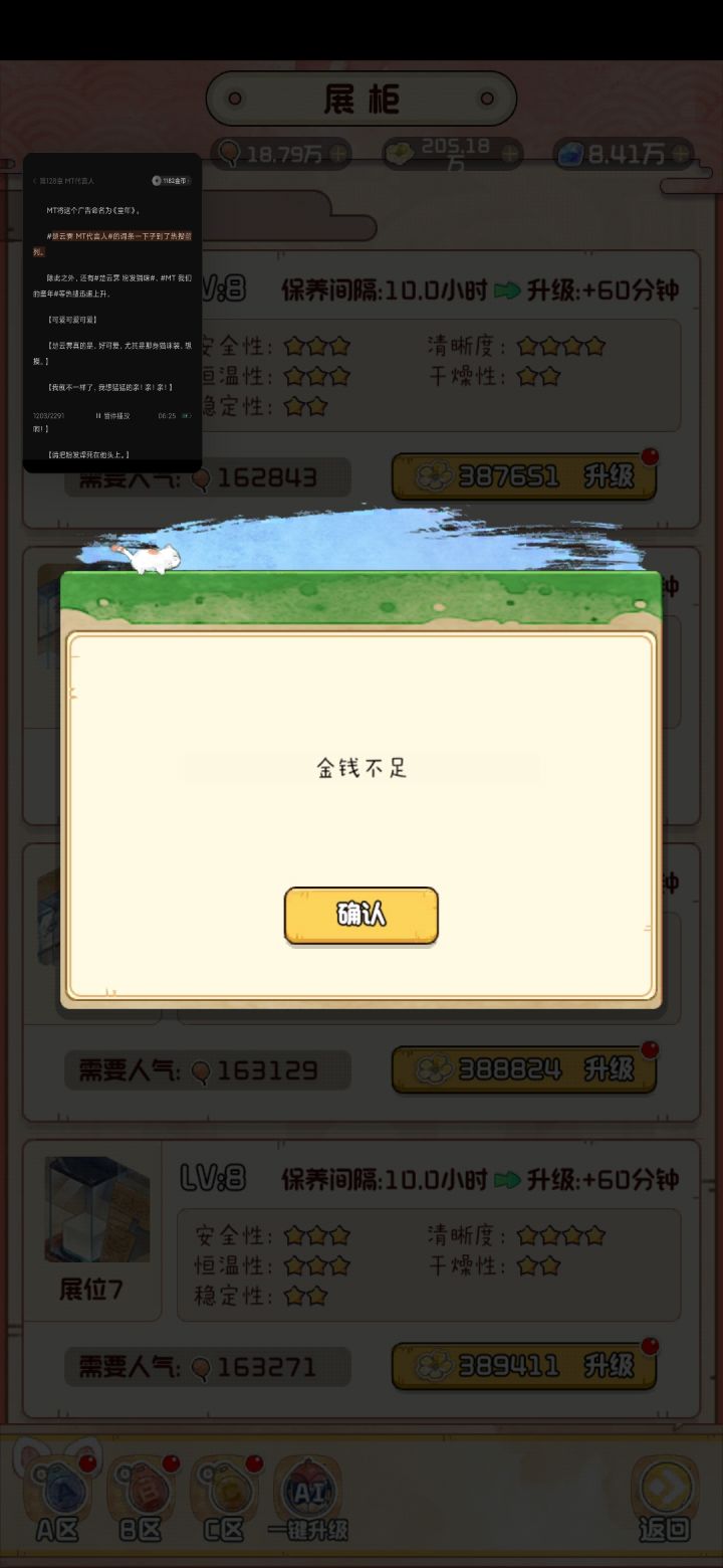 好几天了,以前点一键升级可以直接升级这个馆,明明显示需要的钱我自己的钱是够的,但是一按就显示金钱不足,但是我们如果我一个一个点升级又可以了#