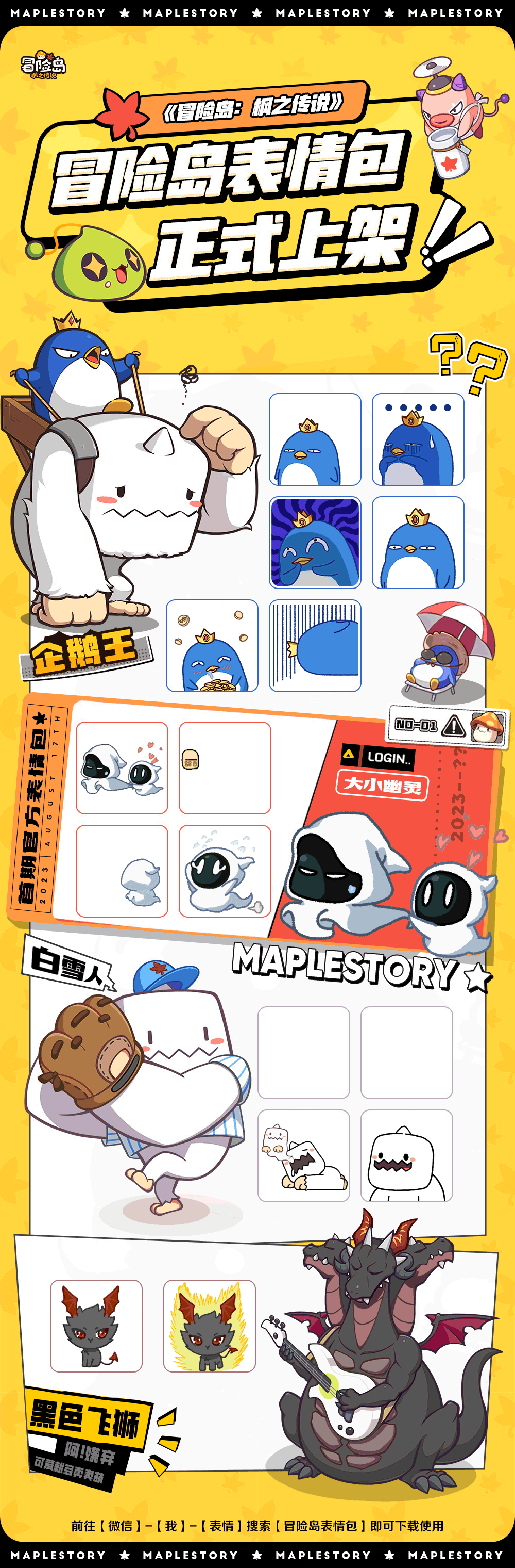 《冒险岛:枫之传说》表情包第1辑!来围观一下企鹅王、白雪人、大幽灵、小幽灵、黑色飞狮的日常吧#冒险岛:枫之传说#冒险岛手游#游戏安利#游戏推荐#游戏讨论