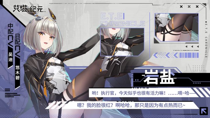 『哟!执行官,今天似乎也很有活力嘛!……嗝~哈——嗯?我的脸很红?啊哈哈,那只是因为有点热而已~』〚同步者数据〛 [名称] 岩盐 [本名] 莉昂娜·阿加特 [身高] 141 [外表年龄/真实年龄] 16/22 [喜好] 酒、荤段子 [中配CV] 吴迪 [日配CV] 悠木碧 ▲官方Q群▲《艾塔纪元》玩家1群:733515755《艾塔纪元》玩家2群:604646101《