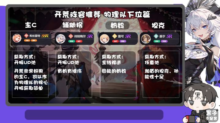 刷初始号。钻石只抽卡,不买体力,不抽专武。主抽火鸟或者暗刺池,一直抽到满星,再抽芮塔池。芮塔的破盾与打断很重要。这样火鸟活动结束前,能有两个六星角色,两套专武。如果嫌不买体力太无聊,可以玩两个号,一个抽火鸟+芮塔,一个抽暗刺+芮塔。通常很少同时上场火鸟加暗刺。俩C抢技能时机。减伤增伤技,破盾打断技,治疗技,输出技。每次只能三选一,同时出现两个不同输出技,通常选倍率高的,除非怪很多,才选