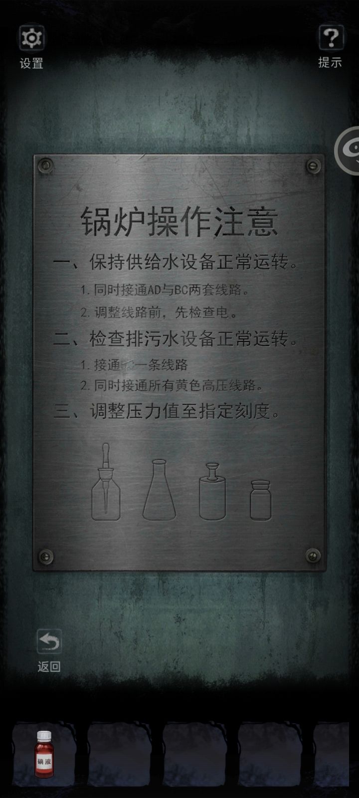 😍通关了,难度刚好,体感不错。优点是依赖攻略的地方不多,解密总体比较简单,只个别解密略显生僻。文字、场景都比较简单精巧,对路痴友好。缺点有三:恐怖的地方一共三处,两处集中在第一章,后续全解密,恐怖元素相对偏少且不均;篇幅过短,故事不完整(期待后续更新);场景感应不太灵敏(秤的地方点了好几次)还有最后一步提示“连接BC”bc被磨花了我全靠细看墨痕后面非常一点的模糊痕迹,艰难猜到bc,设置个消墨痕的步骤也好啊,靠细看猜出答案有点牵强了😅
