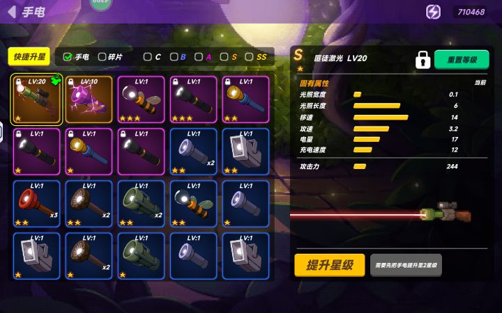 1星20级匪徒激光没有0星10级紫色雷电强。