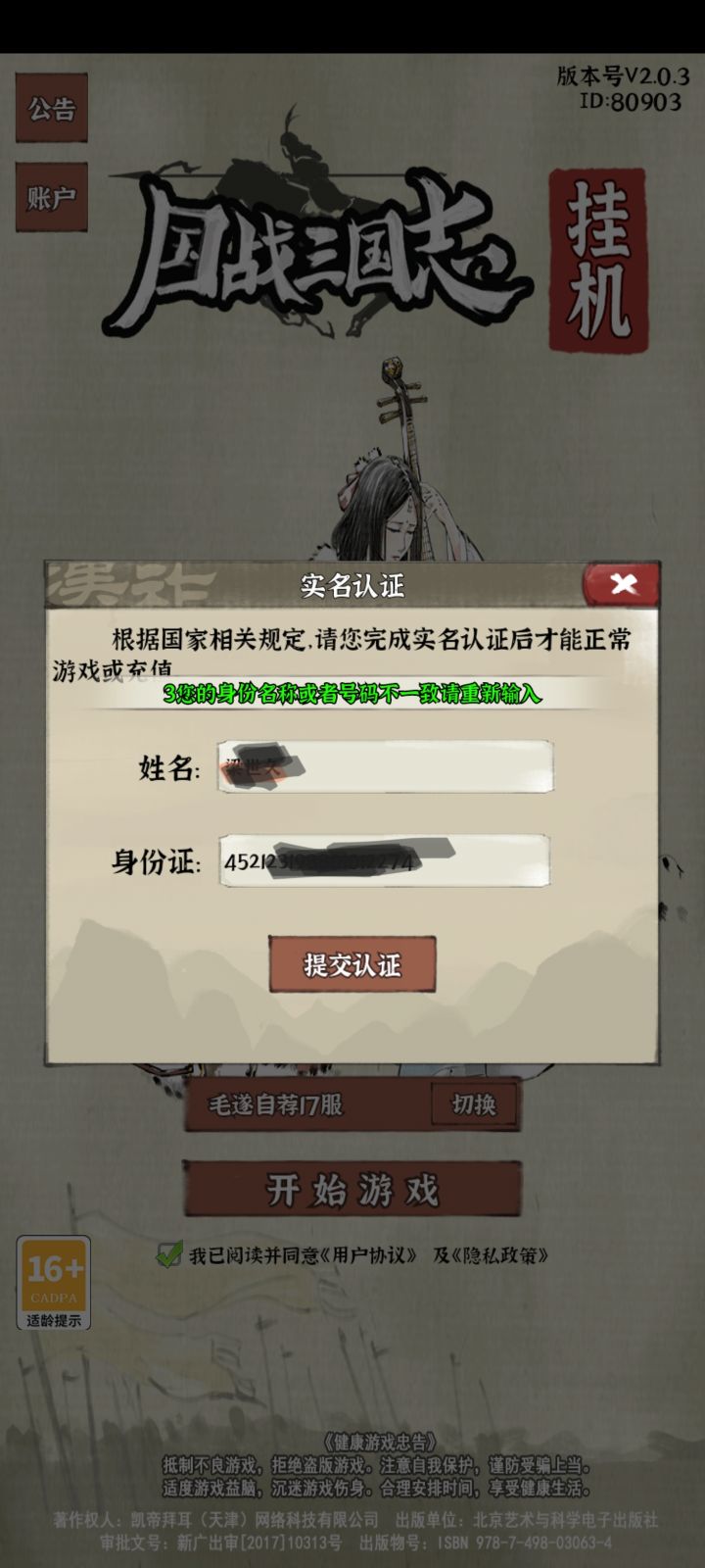 自己的身份证登不上,你相信?!从游戏实名认证出来到现在,第一次出现这情况。请给我一个完美的解释!