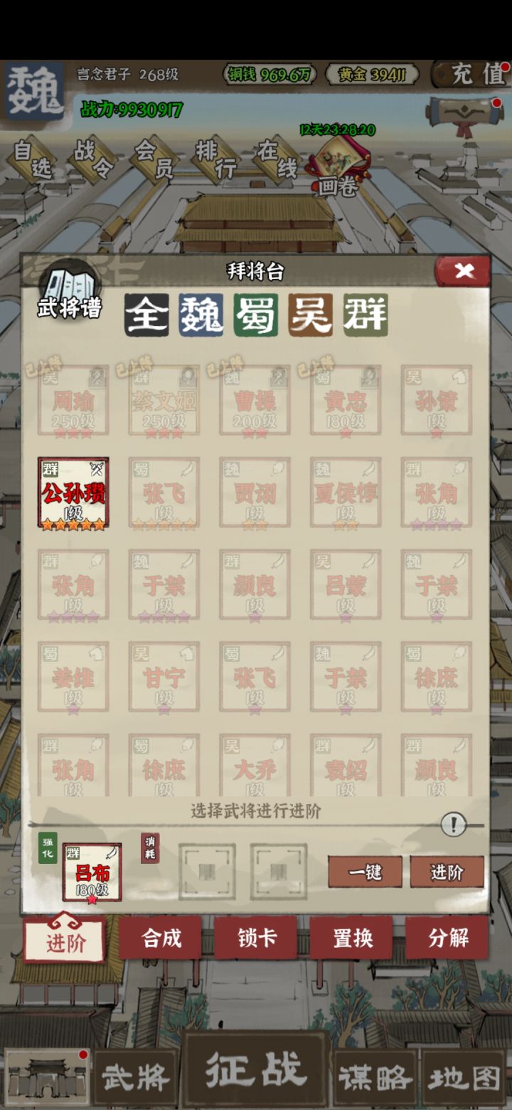 武将升星时,满足条件的武将不能选择