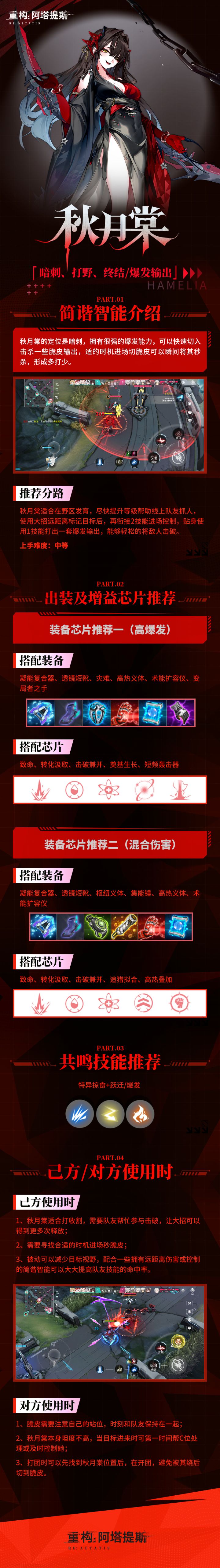 简谐智能攻略丨秋月棠秋月棠,那可真是惹不起的存在呀(Φ皿Φ)一旦成了她的目标,保证你没多久就找不到北啦!所以啊,今天就跟着哈米莉亚的脚步一块儿来探探这位行踪不定、美得冒泡的大美女的底细吧!—— 欢迎来到阿塔提斯大陆!——▼ 《重构:阿塔提斯》公测现已开启!TapTap下载地址:▼ 公测福利资讯《重构:阿塔提斯》公测登录即送大量【简谐智能】和特级【SKIN芯片】,体验游戏相关活动,