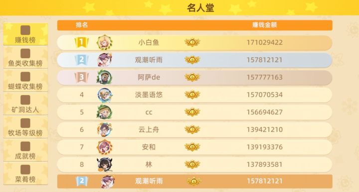 【恭喜】观潮听雨!成为达成亿万富翁成就的第二十四位玩家!