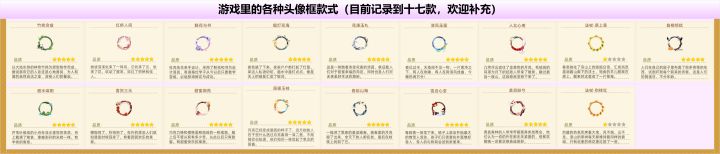 游戏里的各种头像框样式记录