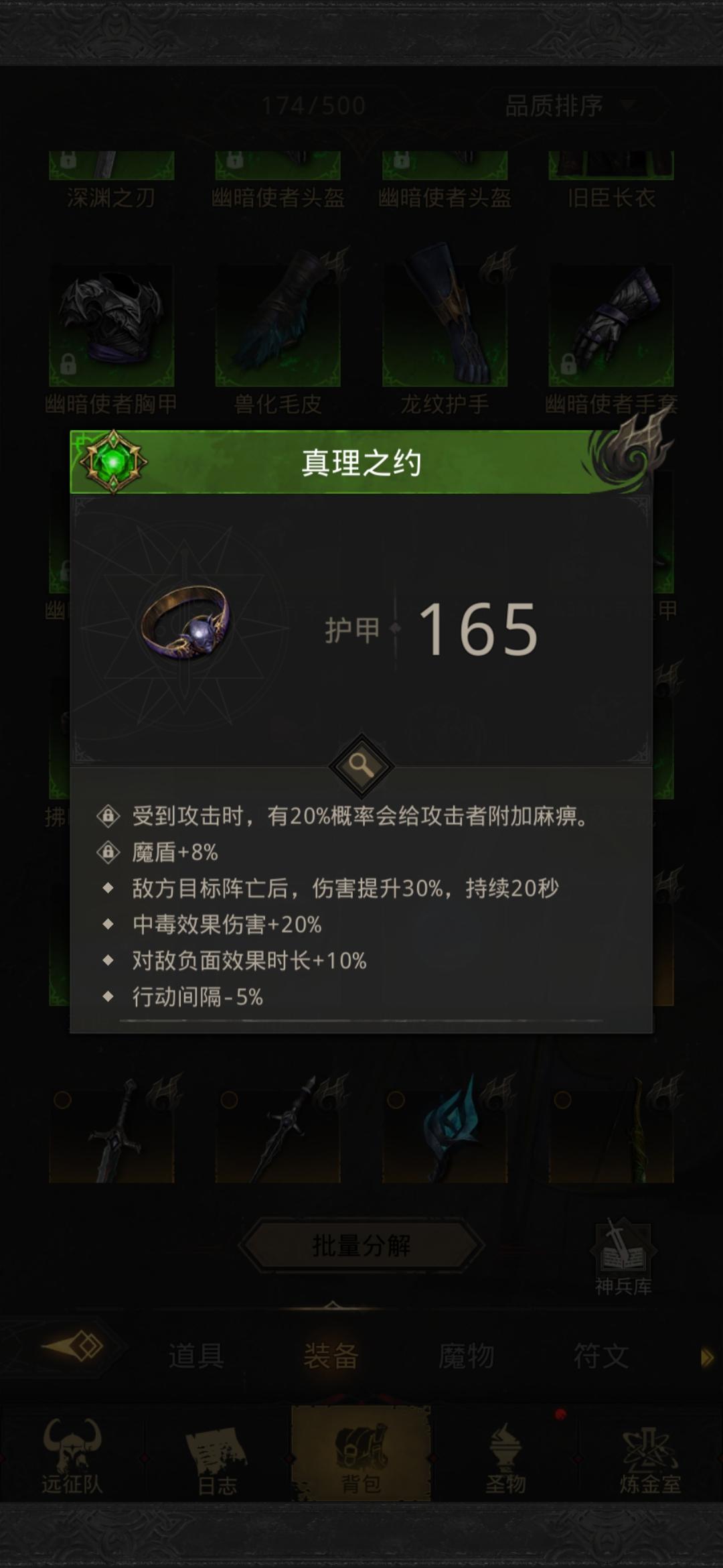 堆满减疗,一路就是打打打,标记满100了丢迷之物,没有其他负面影响。boss没仔细看技能,感觉不是很难,只要减疗够(我上了挨打剑,枯萎带了毒弓毒戒指只开枯萎箭,再上树妹,双c巨神减疗套装,都超过200%了吧)。50层boss能复活一次,但是相比秘境18牛马boss,简直是个小可爱。