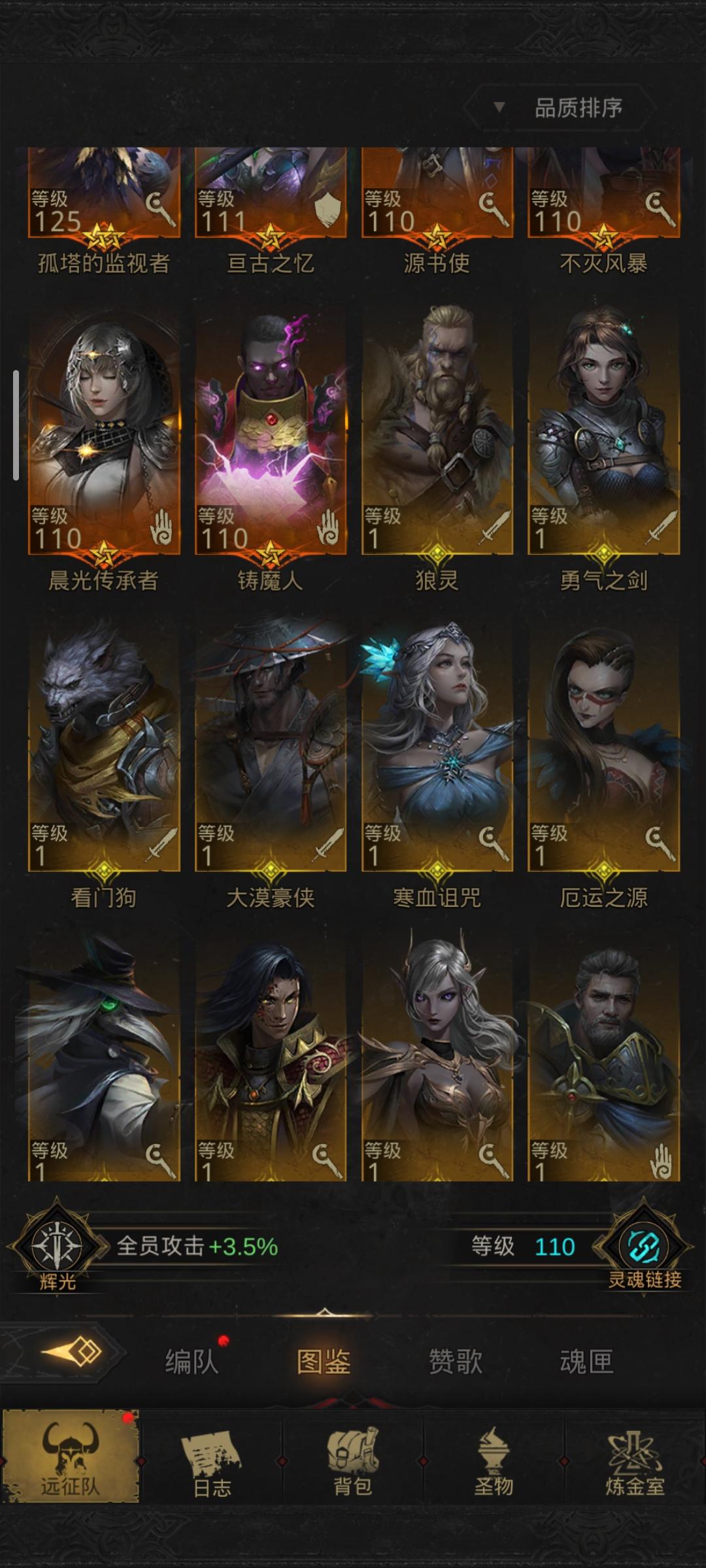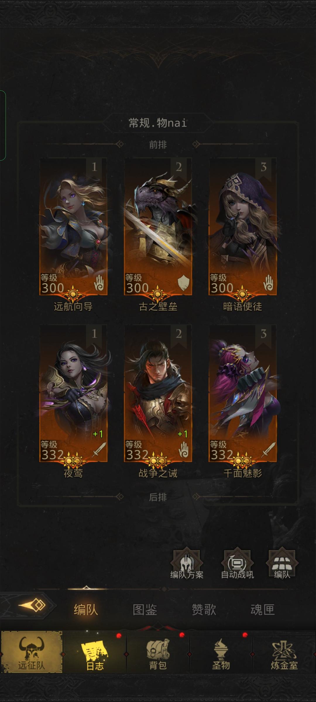 (转载自微社区,原作者:太可怜,ID:53259)角色名:太可怜UID:4106阵容1盾:晨星(第三天就送橙色的,而且真的很肉,萌新福音)1奶:永望之歌(必需品,单奶调到90%以上,群奶2个70%)2主c:夜莺(破盾)凋零剑华(输出很高,晨星没血了开战吼扛,可以省下奶妈的战吼)免疫恐惧的项链给剑华用2输出:千面魅影,看门狗,枯萎之心(都行,只要是物理输出都可以,)勇气之剑也是个不错的