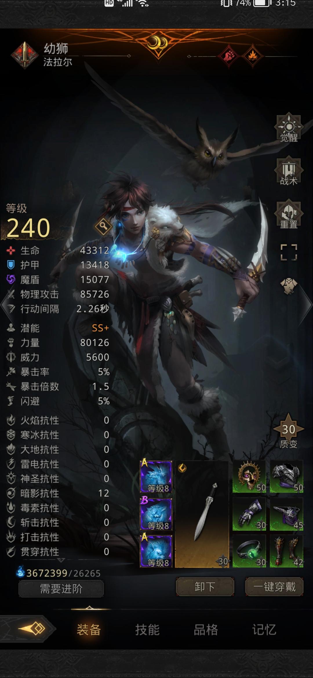 记录击败普通默神,然而还是卡在启明镇左边实验室关底的白毛猩猩。啥时候出个厉害点的贯穿副C,狮子太脆了,有些时候都让燕子和战争互吼,反正狮子也打不出什么伤害,现在就等周五神兵库实装,应该能提一点输出,虽然不太清楚具体机制是什么