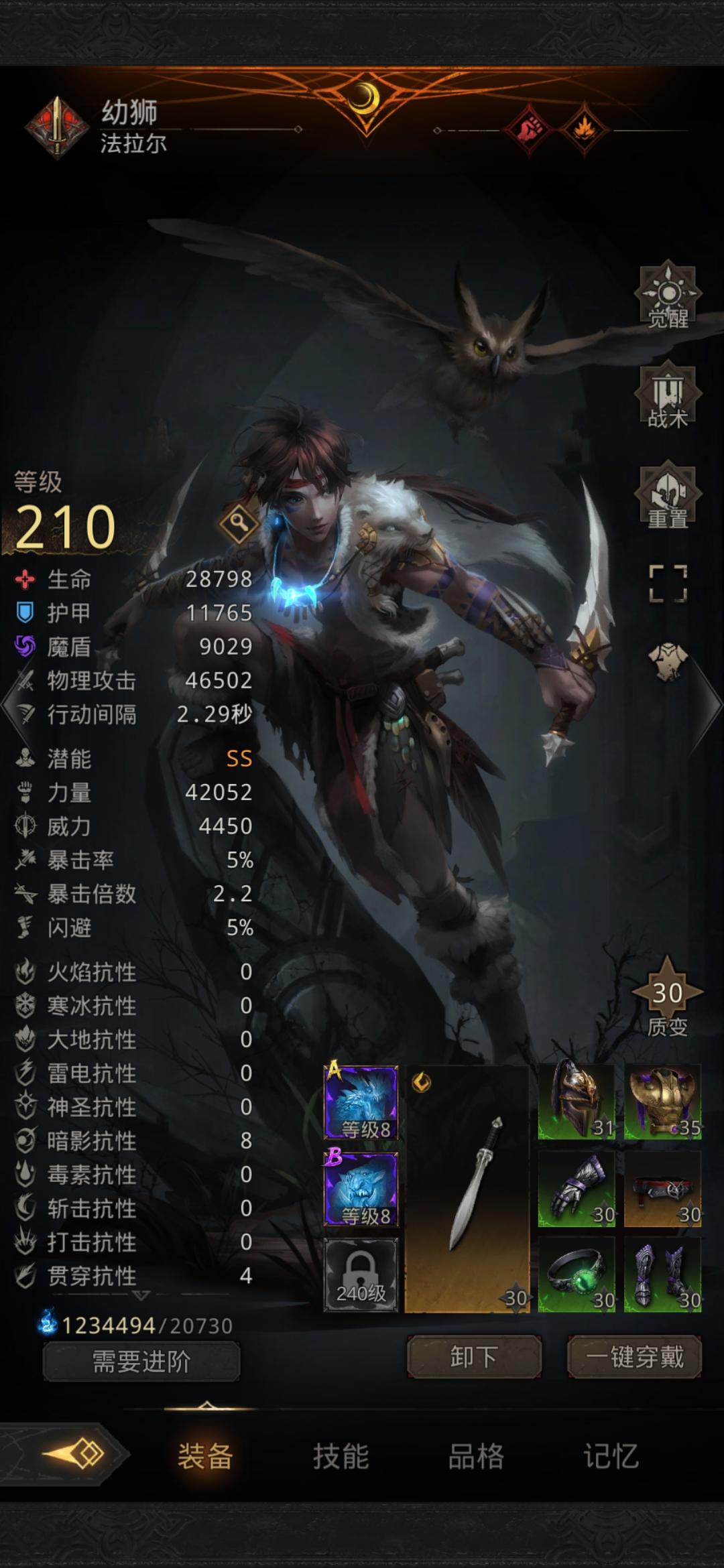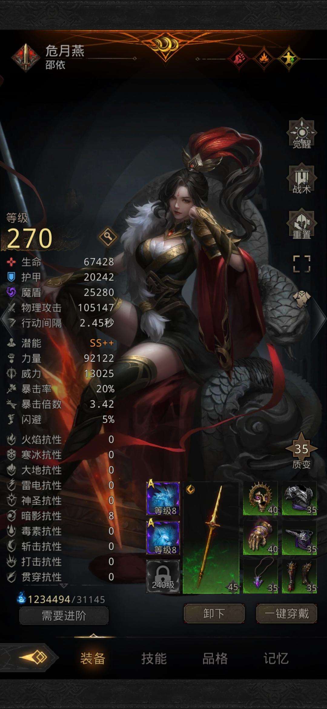 一周前,刚从千面晨星转到燕狮吼,当时卡在东西托和二十年后蛮牛谷,忍痛抽了好几个880的十连,把链子慢慢补到了210,貌似打到最后的图了?接下来这点应该真的要卡很久很久了,海怪岬的罗瑟也太鬼畜了,疯狂击剑🤺,暗月之境那哥们就更快,一直吸血,他图层还在我之上,底下的血池把我角色遮一下遮一下(不过没啥影响,单纯觉得好玩)。最后吐槽一下矿石,这升级武器和防具的矿石好缺啊,狗粮本里给的也太少了,建议增加获取渠道,而且是大量获取的渠道😡,最后想问下,这游戏的暴击率最高能叠到多少呢,这不暴击也太伤了,大伙都上好buff了等着主c出场了,结果一屁股坐下来就这么点动静,丢人😓