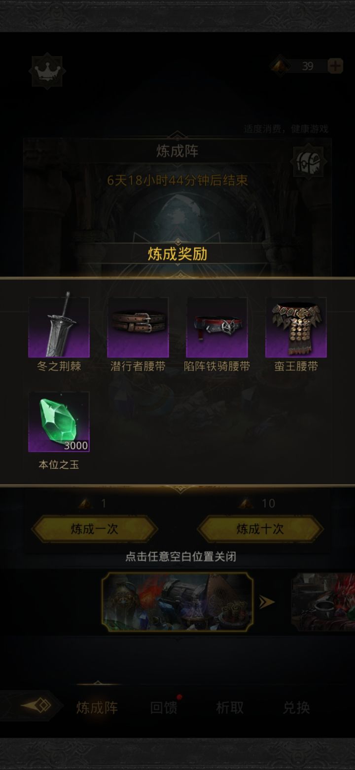 刚好没玉,刚好又重复两,属实是在死亡线上挣扎了不过现在也只能囤红沙等到出30%生命圣物再用了进了无限炼金阵全员脆皮,现在目标就是咸到330链。积累的重复魂魄我不准备分,留着升魂域