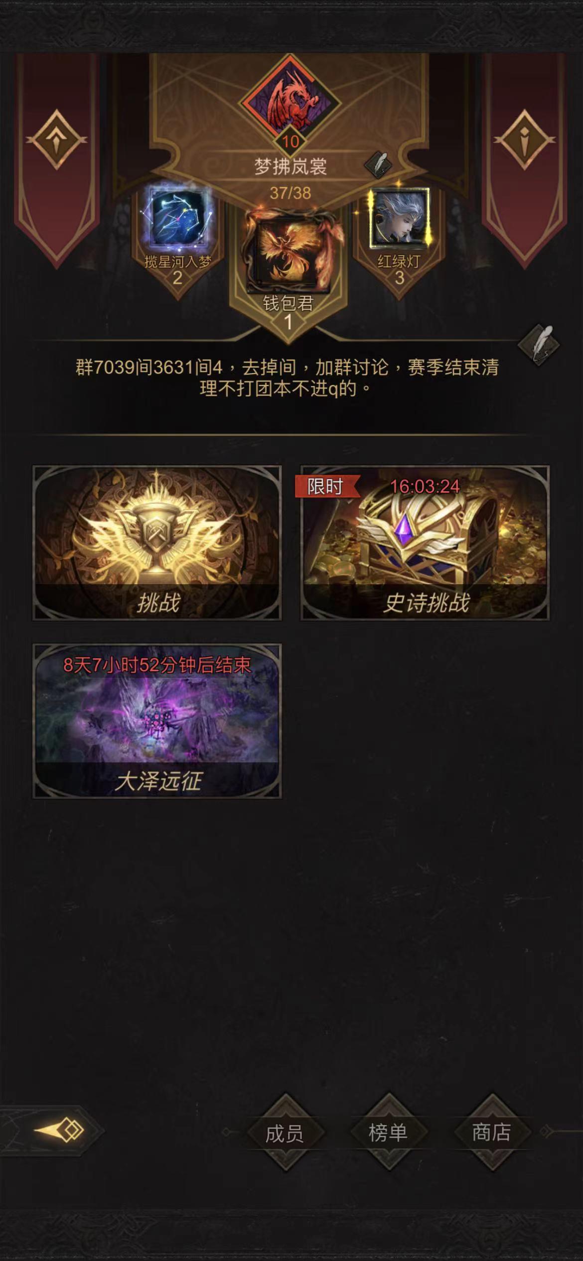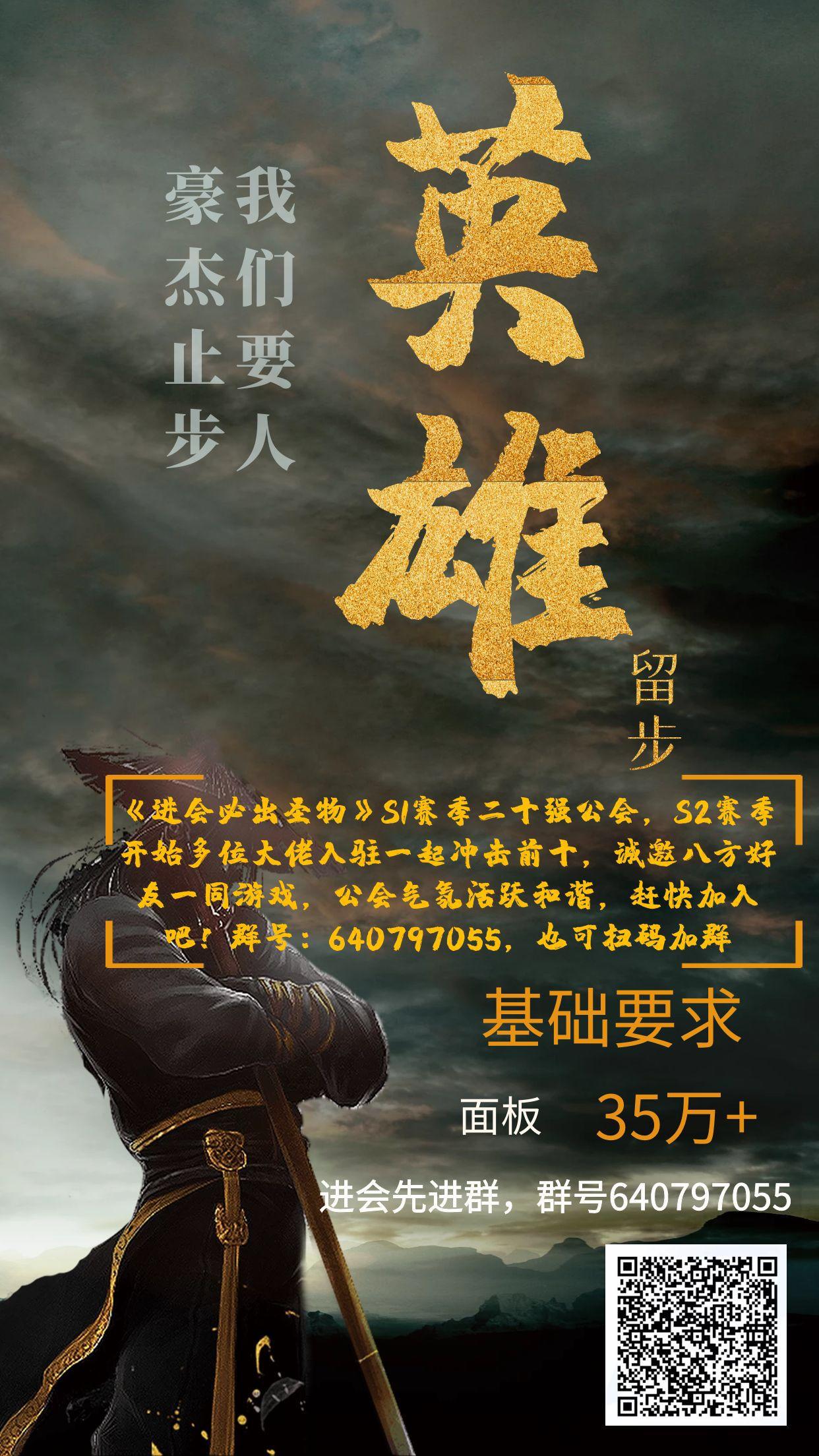 S2赛季第56名,招两个300链子稳定选手,要能进群的有妹子,有大佬,有攻略,一起讨论高难本!!没有其他要求,赛季打本平时打贡献就行!