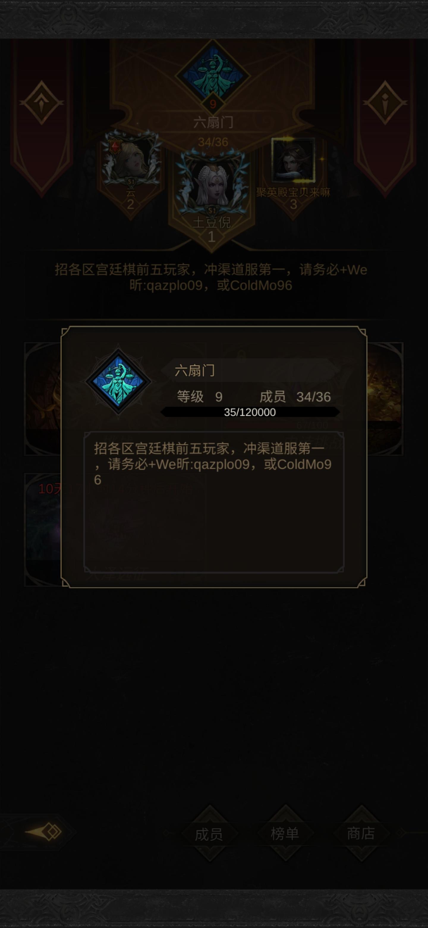 渠道服第一个9级公会 两个位置 有意者加图🛰️
