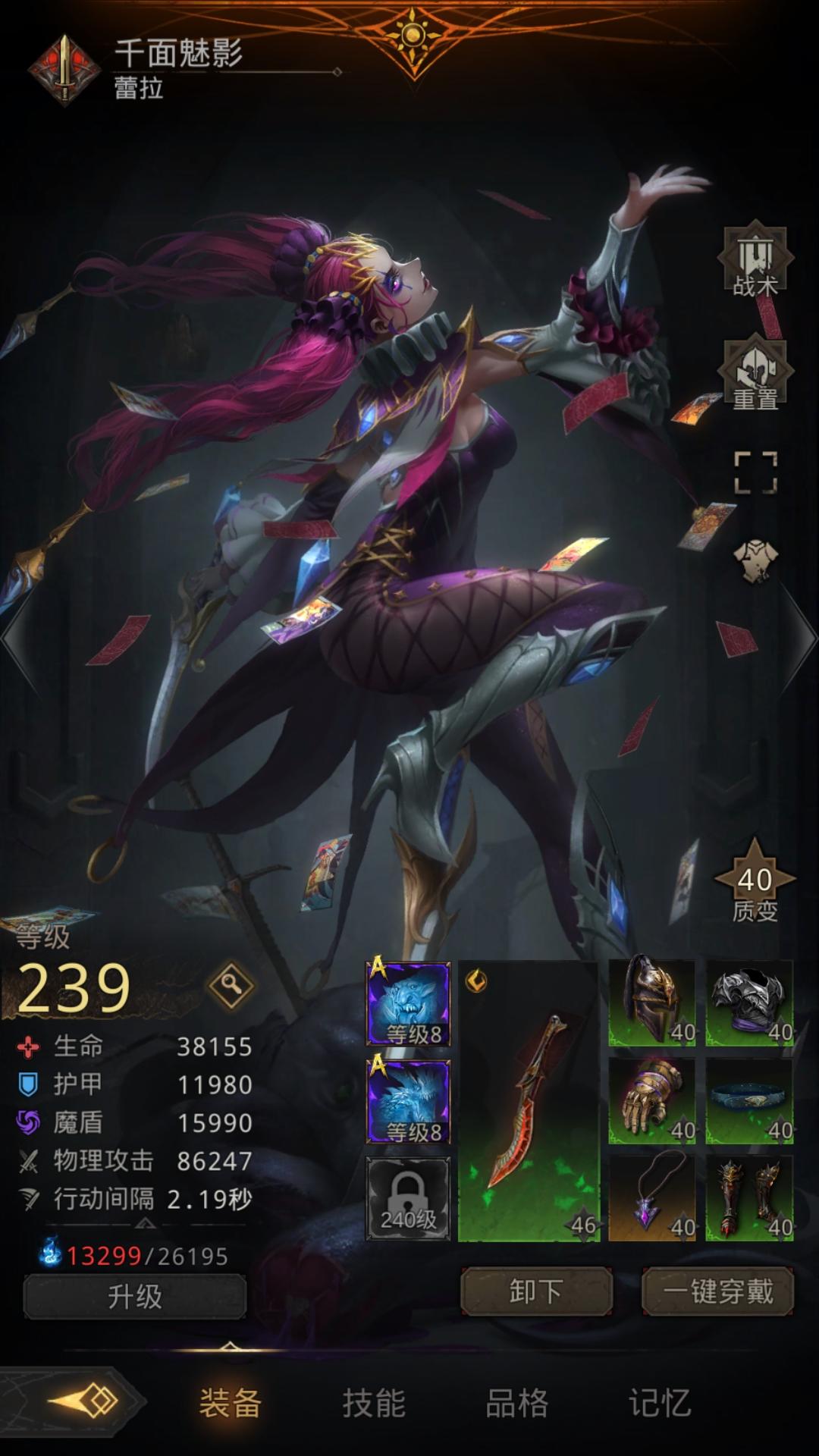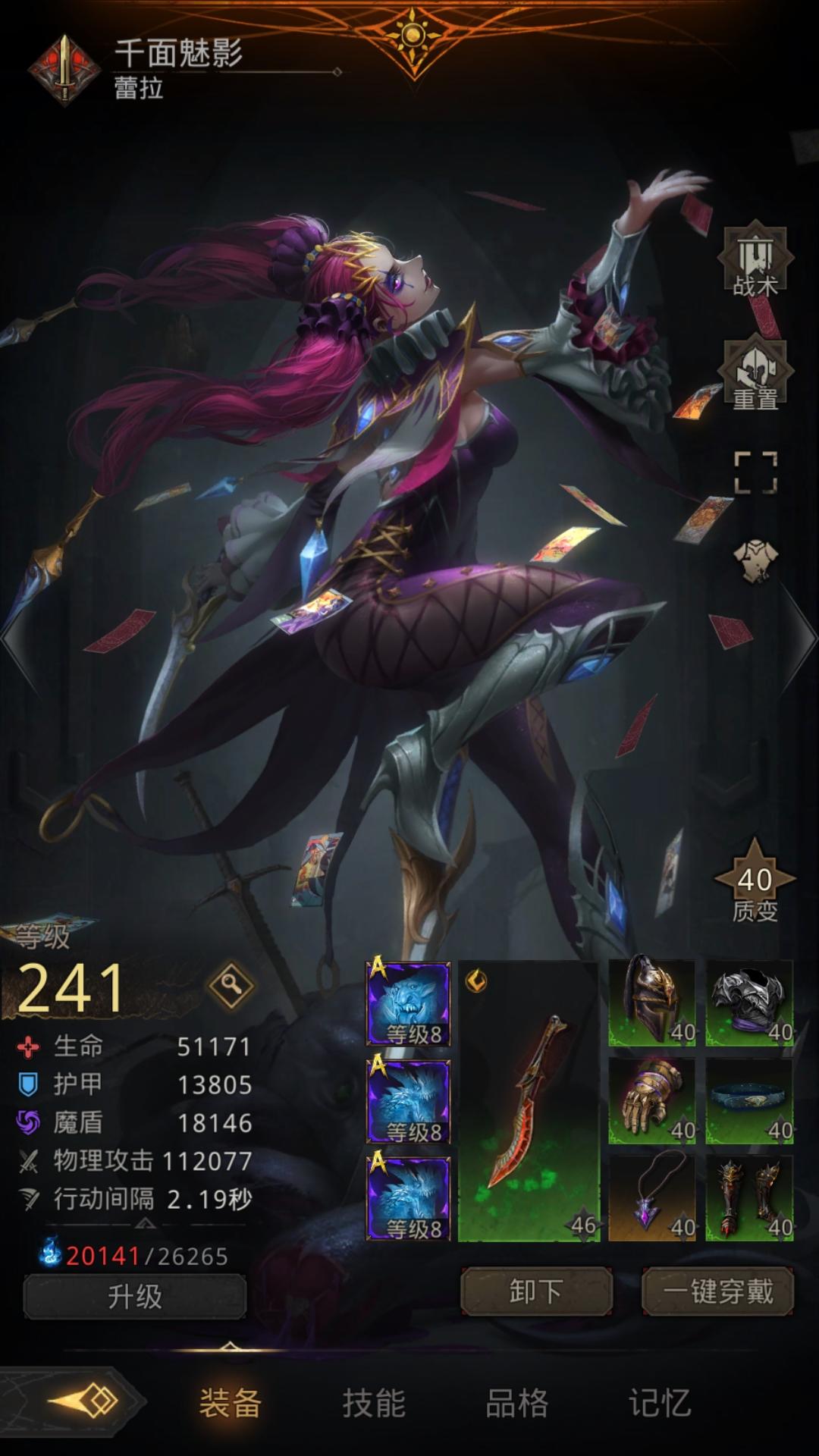 千面的武器用啥好,暴击1是必选的,但看了好多帖子,有的说蝮蛇好,有的说亡命好,有的说伪装者好。但风轻我是直接给夜莺用了。