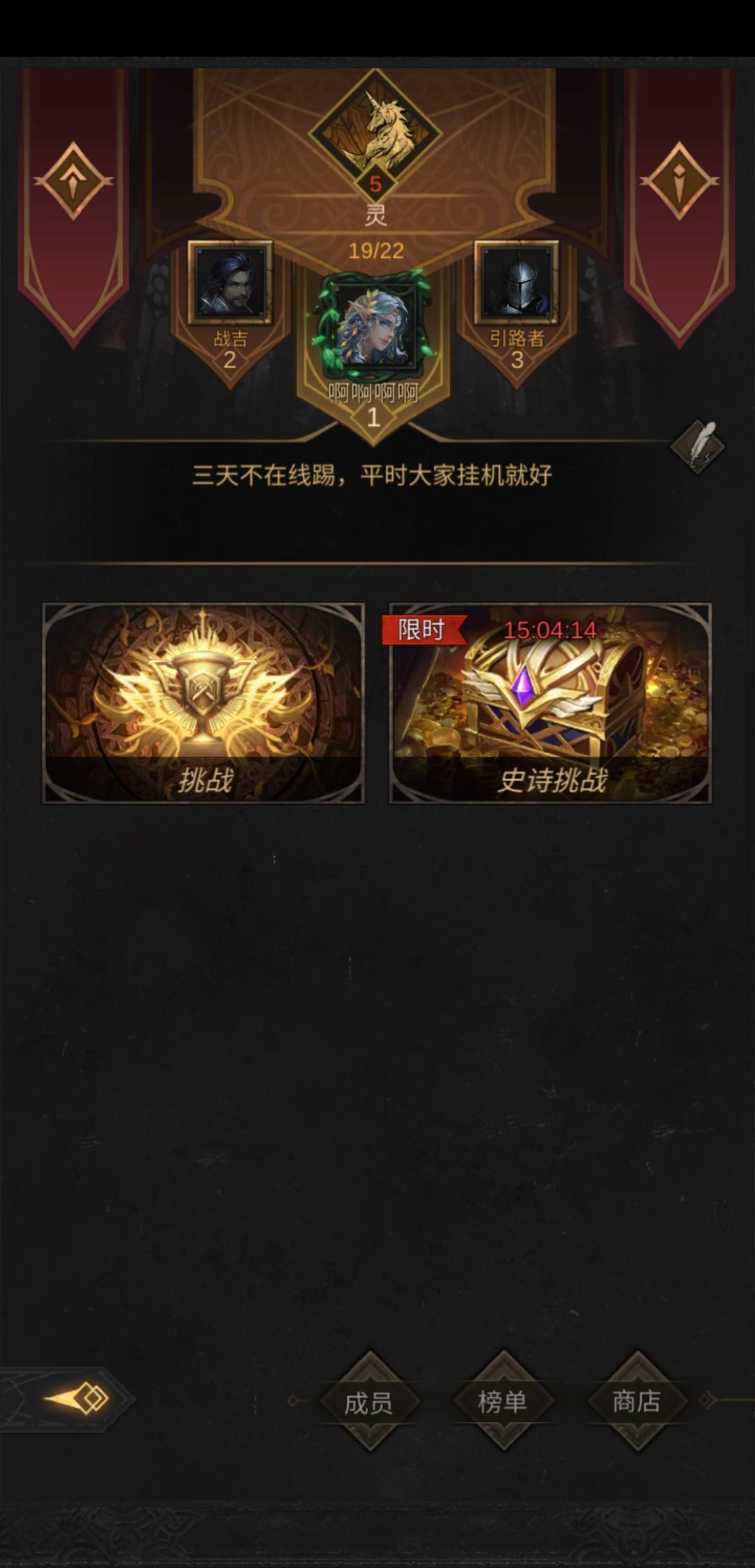 五级小公会招人,只要每天挂机打公会的咸鱼,不要大佬,三天不在线才踢