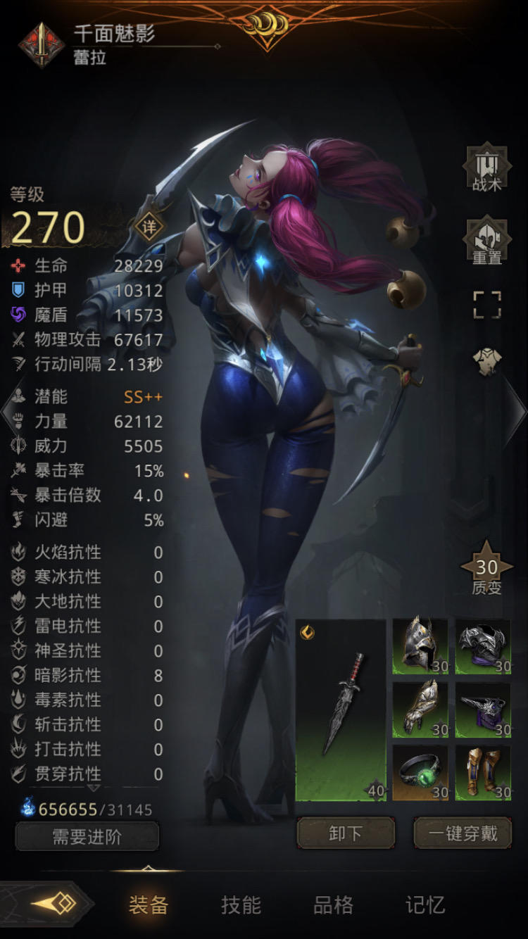 但赌脸也有技巧,石化王要活着(最重要),dps要活着,晨星要活着。没错这三个最重要,拼脸石化速度输出,其他都是锦上添花,就是谁加伤厉害上谁。这时最重要的就是装备免伤,免伤次数越多越好,魔免四次堆满物理也多多益善,这个是关键(boss伤害有物理与魔法,发现石化王死的太快的时候,就要把相应保命装备给他),其次是+80%负面时间和减cd。至于dps千面还是夜莺雷法啥的不重要,终究看宝爷的脸。日后的夜莺爆发更强,千面相对稳定实用,过图还是千面好用的多。(我的术士就是无聊下食物没吃,闲的随便过的,宝爷全程石化无伤过)