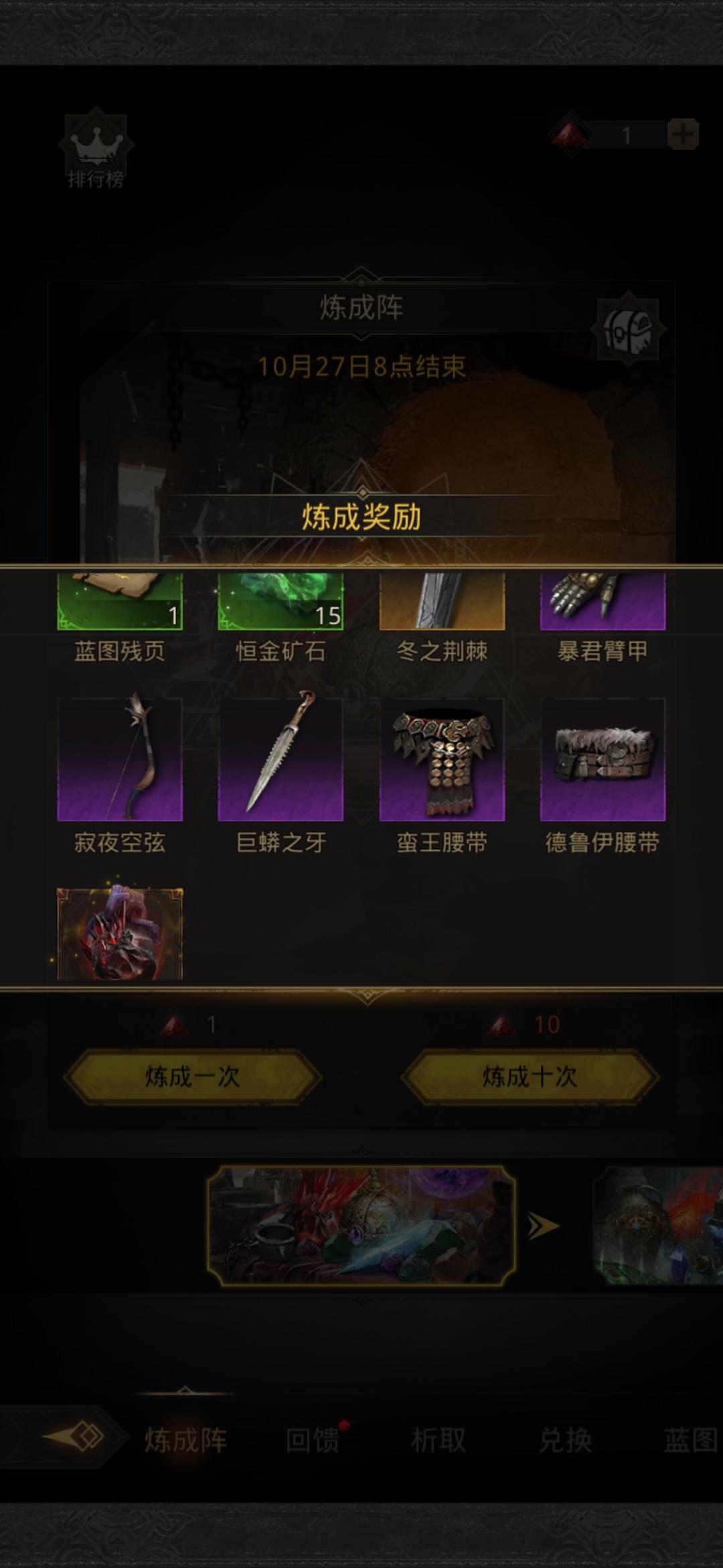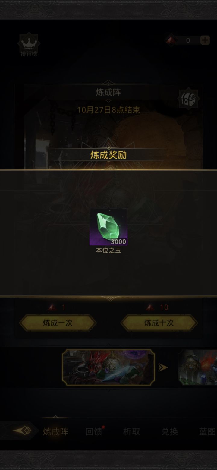 练成阵居然抽了三次圣器,后面都成了3000本位之玉了