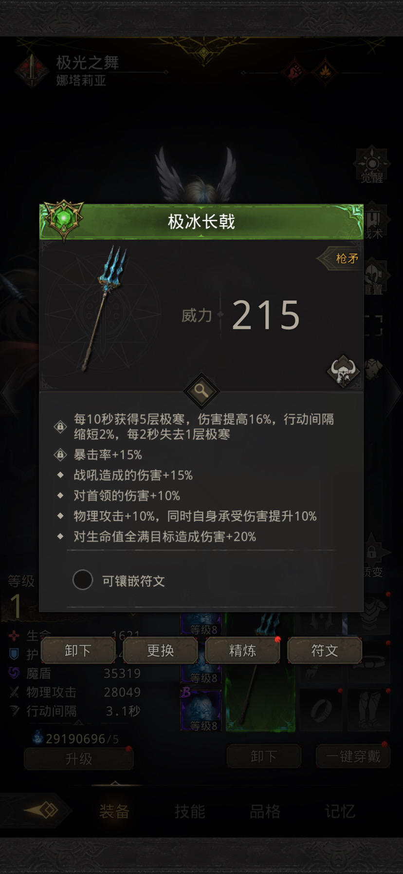对不起罗拉娜同学,娜塔莉娅同学她太香了,以后有机会我还会回来看你的。爬魂墓用暗影娜娜,即死周到1280层左右就基本很难了。今天实在无聊,转了冰法对,暴击时候血条一截一截消失。极光面板刚到80,比之前的罗拉娜高了5W左右,冰法也重新做了二代,面板跟影法师差不多,总之魂墓和奥术监牢的体验都明显提升。现在没有英灵碎片升第七个双日,等级没办法干到390,不然应该又有一截提升。斩击玩腻了,以及还在坚