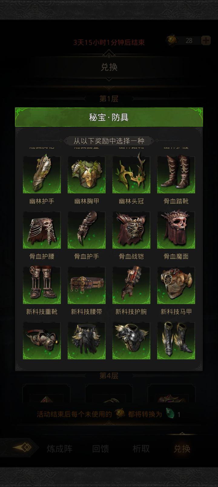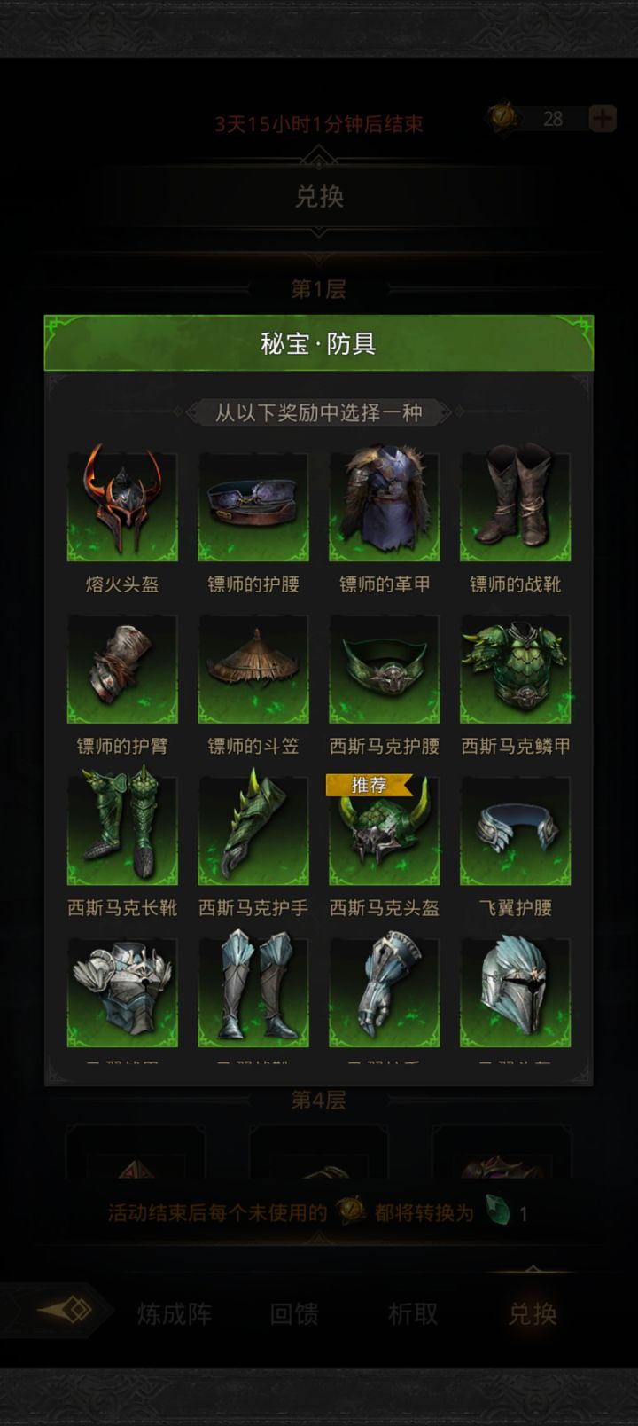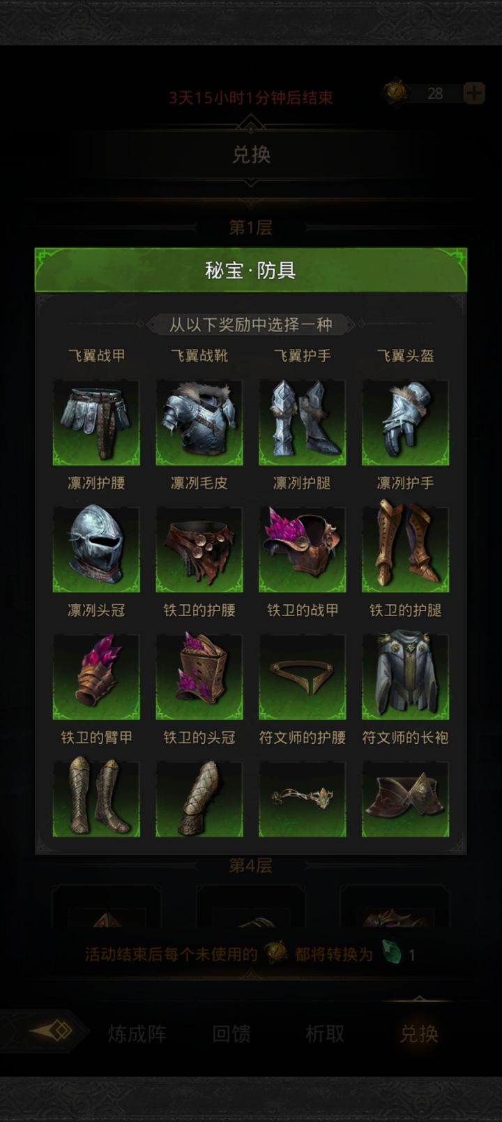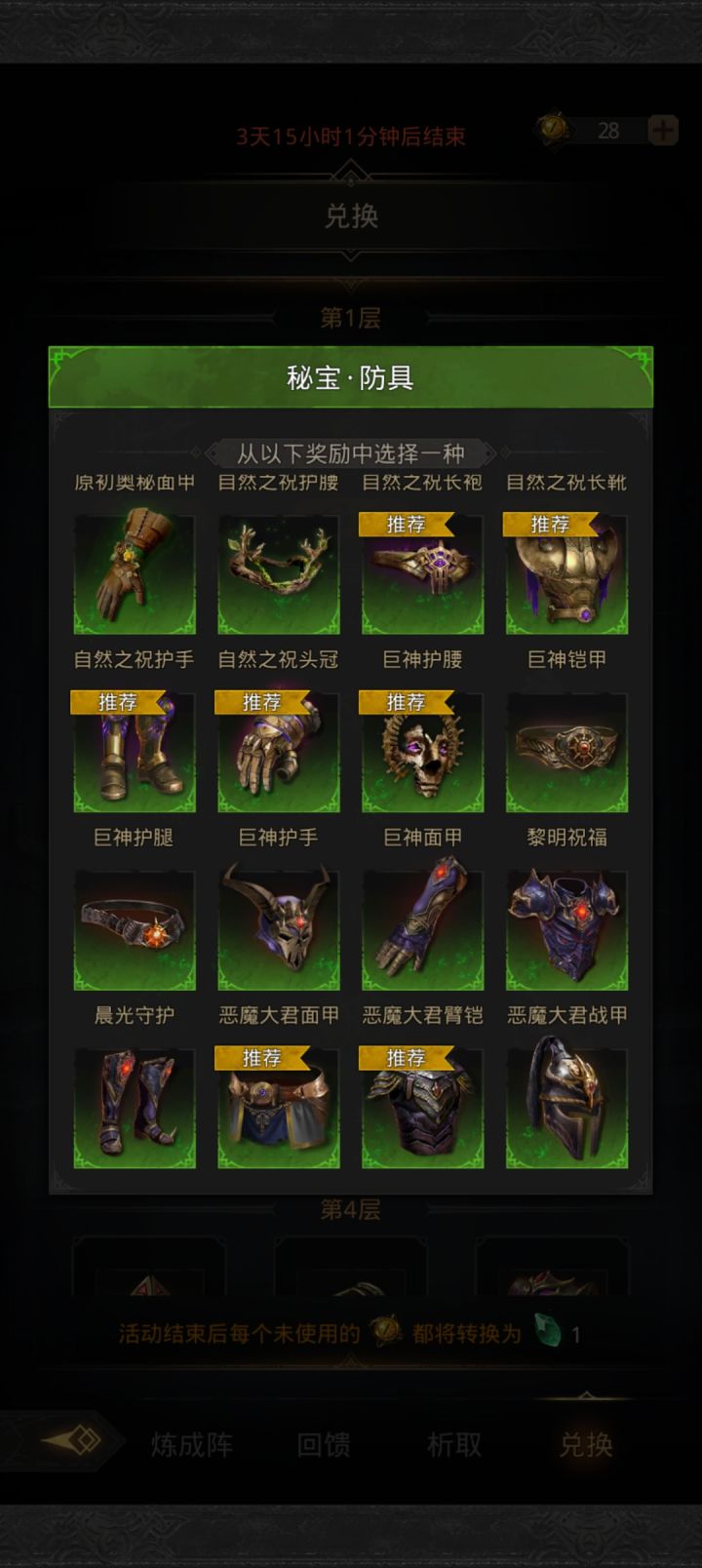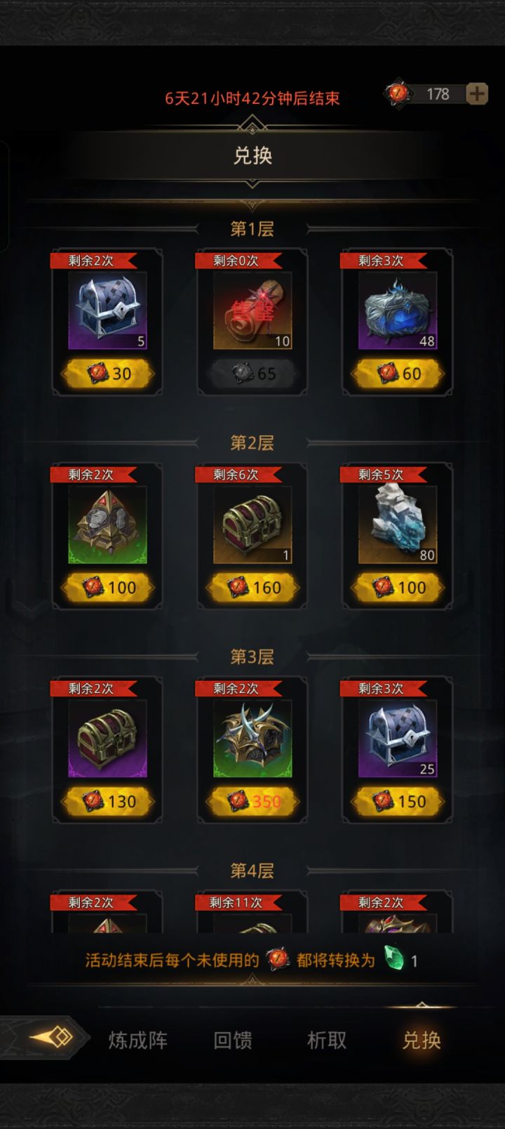 因为第一天玩的时候正好是上上个周炼成阵快结束了,也不知道抽,就买了沙子没用,这次炼成阵双倍加上地图干出来的搞了450抽,直接梭哈,因为买了礼包里的慈悲刃和渡鸦弓,所以这次直接换了二代匕首和裂星的材料,又搞了巨神腰带和胸甲狠狠提升一波,剩下的50抽肝肝地图搞出来之后换什么比较好呢?给点建议呗大佬们,再就是蓝图怎么换比较好