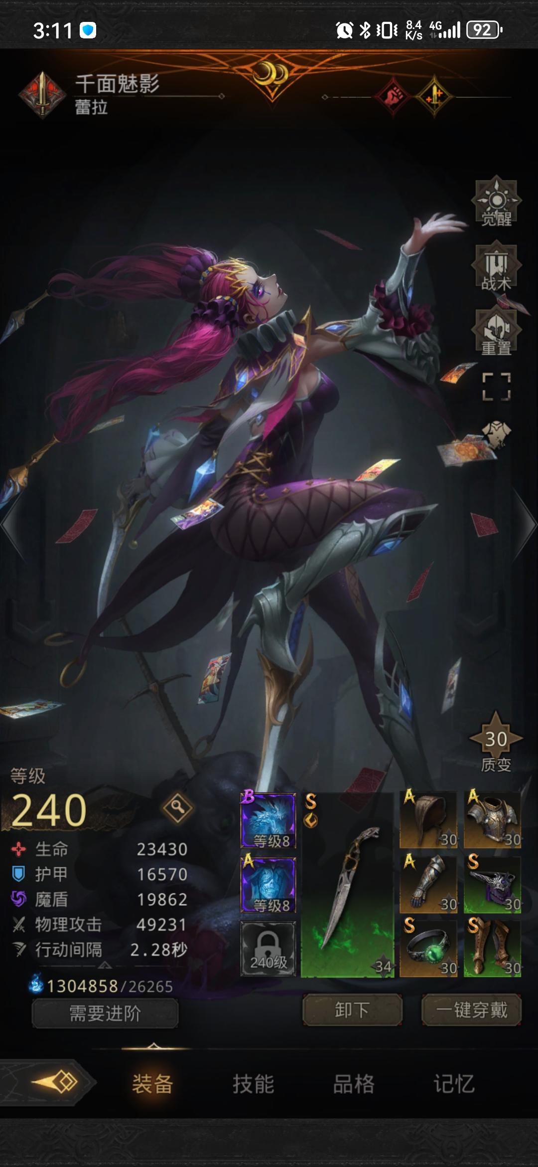 我把这个发给别人看,他们说千面魅影输出不够,要用sp夜莺,但是我没有能不能用别的。还有我看图鉴上没有sp夜莺啊。