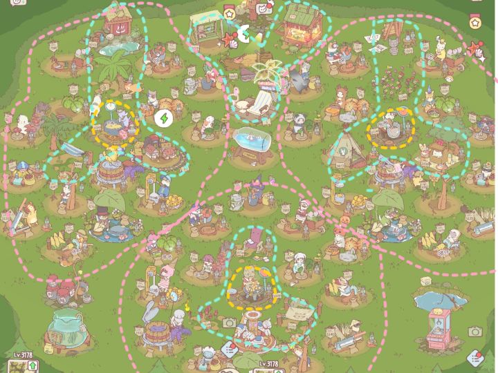 1.设施摆放:以三只主猫咪为中心,休憩和备菜设施围绕摆放2.设施关联:我喜欢把画画放在野花丛上面,也喜欢把动作一样的猫咪对称放(红萝卜~白萝卜、切南瓜~卷心菜、切蘑菇~西兰花)3.设施保管:对海边主题很友好,可以把料理台香草展示柜等一些设施保管,海边主题摆放要分散,就会有很多海星贝壳小🐚4.🎤递给你: